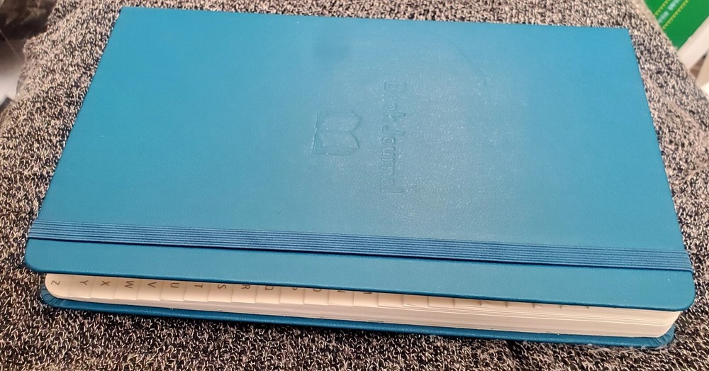 2018 edition, small size roughly 5 inches by 8 inches with alphabetic index tabs and elastic band. Includes two sheets of stickers. Journal only as shown - does NOT include outer case or sleeve. Stored in box EBBDBK3