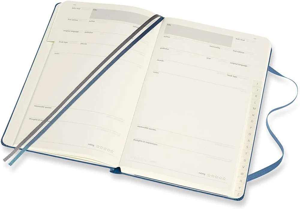 Further Details Title: Moleskine - Book Journal, Theme Notebook - Hardcover Notebook to Collect and Organise Your Books - Large Size 13 x 21 cm - 400 Pages Condition: New Release Date: 03/05/2018 Item Height: 219mm Description: The Moleskine Book Journal lets you to keep a detailed record of every book you read. It features structured sections to capture your thoughts and impressions, and space to note down the quotes and passages that made you pause for thought along the way. Every book transports us to another place and time, into someone else’s shoes and inside someone else’s mind; use your Book Journal to map your unique journey through all the books you read. Item Weight: 598g Item Width: 31mm Brand: Moleskine Features: Hard Cover Dimensions: 13.97 x 3.18 x 21.91 cm; 598.74 Grams Paper Size: A5 Item Length: 139mm Type: Memo Books, Notepads & Scratch Pads Number of Items: 1 Style: Passion Journal Theme: Book Color: Blauw Ruling: College MPN: PASBOOK Cover Material: Cardboard Ruling Type: Plain Binding Method: Diary Pages: 400 The notebook is designed to grow along with your literary experience. Store your memories, the impressions and emotions which your books have left on you in a detailed and personal way The alphabetical organisation allows you to have an ordered and structured space with all the most important information on each book of every kind. Write down your thoughts, collect the quotes and the passages which have most affected you Every book is a journey to other times and other places, in someone's shoes. This notebook will be the map of your route, a travel diary of all the places, times and people you meet in each book: your personal literary history It will sit proudly on your shelf, next to the books which have most inspired and impassioned you It is packaged in an elegant protective box, for a fantastic gift idea for those who like to get lost in the pages of a book Missing Information? Please contact us if any details are missing and where possible we will add the information to our listing.