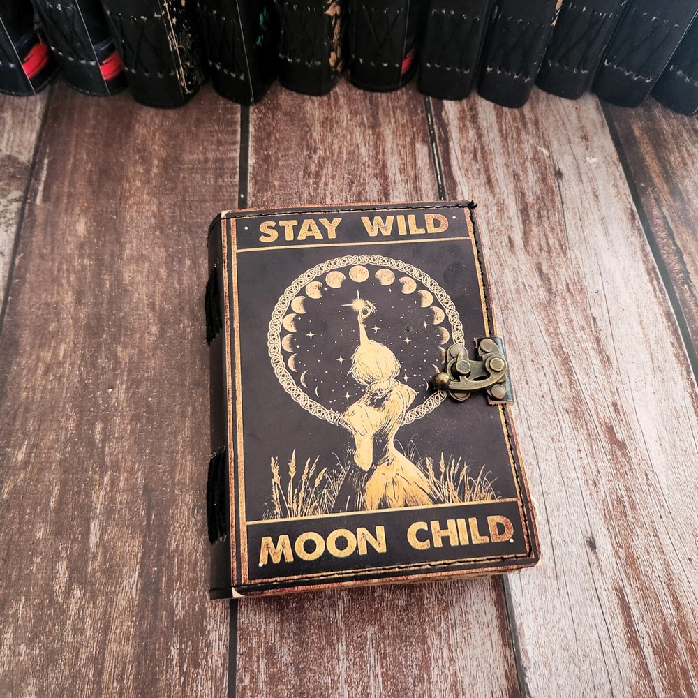 Capture dreams, thoughts, and creativity in this beautifully crafted Stay Wild Moon Child leather journal. Designed for free spirits, artists, and writers, this handmade leather diary makes a perfect wedding gift, travel journal, or sketchbook. Premium Craftsmanship & Features: ✅ Genuine Leather Cover – Soft yet durable, with a rich. ✅ Handmade Deckle-Edge Pages – 200 thick, unlined pages perfect for writing, drawing, or painting. ✅ Secure Lock Closure – Keep thoughts and sketches safe with a classic metal clasp. ✅ Personalized Option – Add initials or a name for a unique touch. Perfect for Every Occasion: 🎁 Wedding Gift – A meaningful keepsake for newlyweds. 🎨 Artist’s Sketchbook – Ideal for charcoal, ink, and watercolors. 📖 Dream & Travel Journal – Record adventures and inspirations. Available Sizes: 📏 7x5 inches – Compact & portable 📏 10x7 inches – Ideal for journaling & sketches 📏 13x10 inches – Large & spacious for creative minds Each journal is hand-stitched with care, making it a one-of-a-kind piece. Whether for personal use or as a heartfelt gift, leather notebook is designed to inspire.