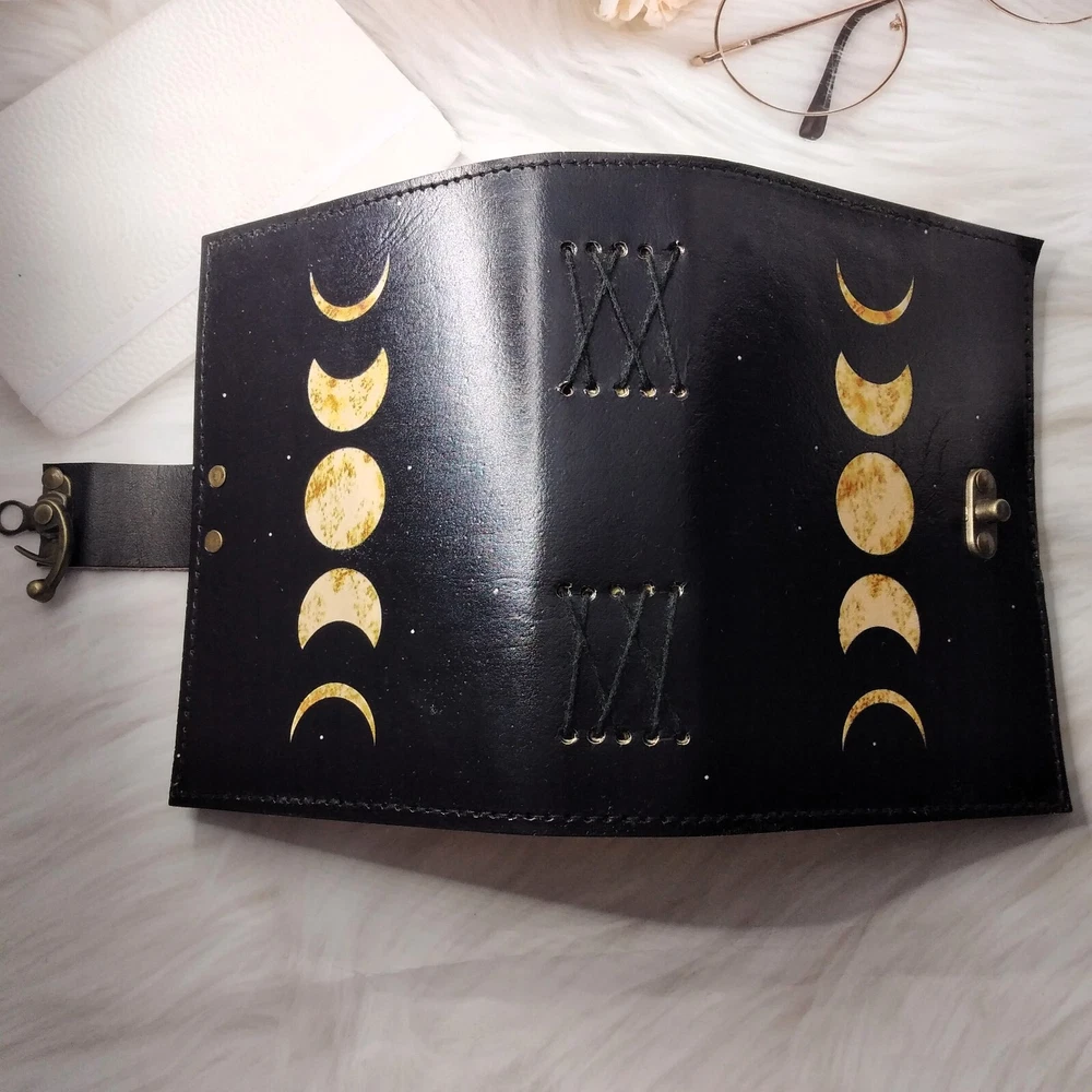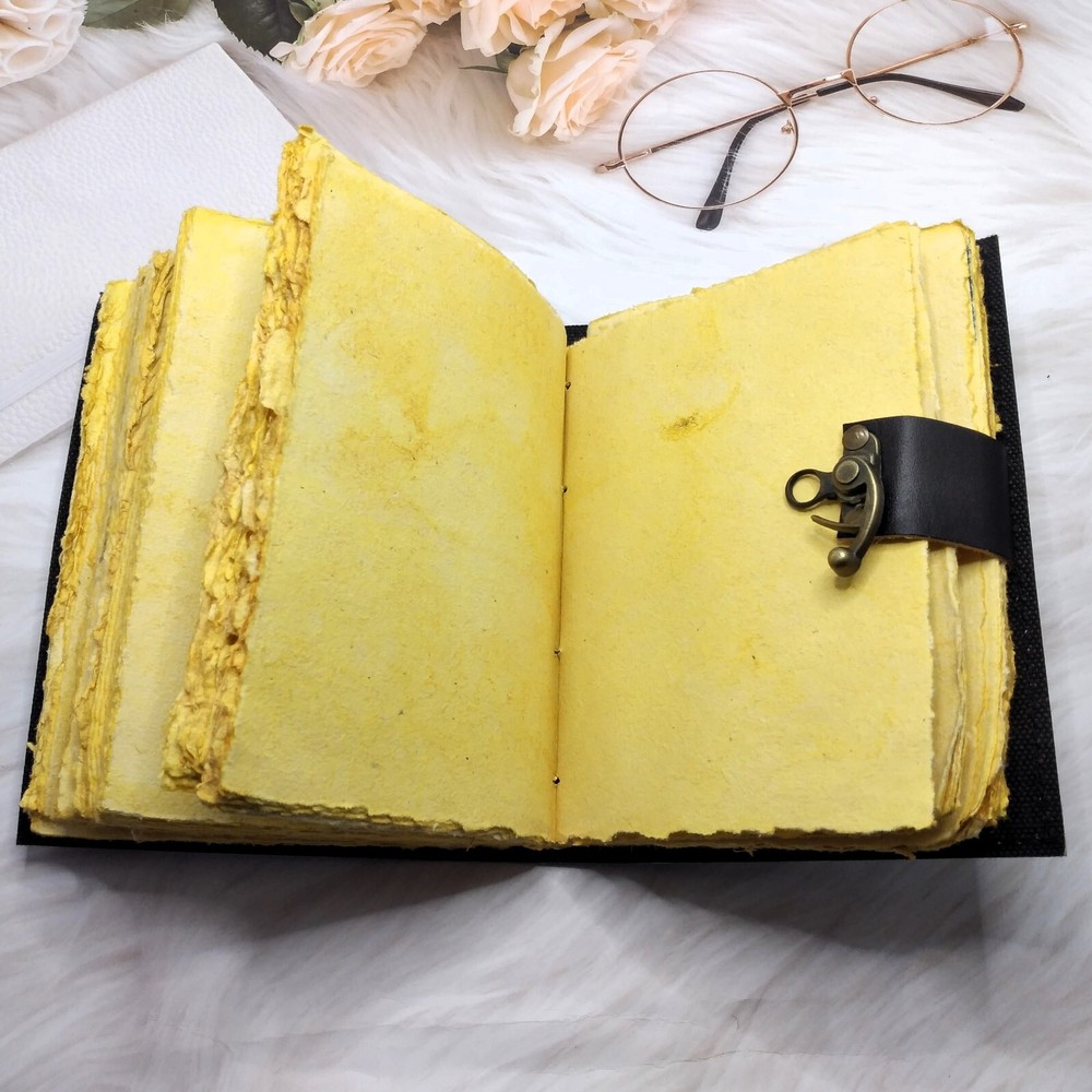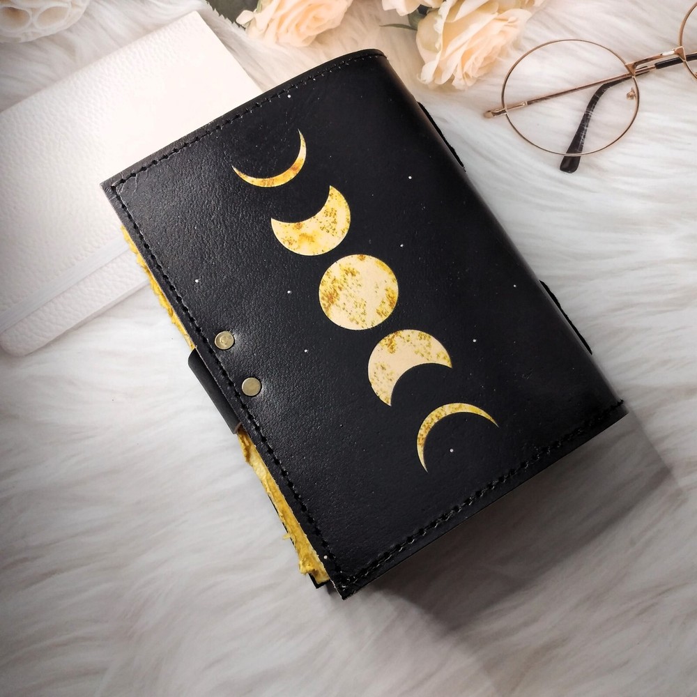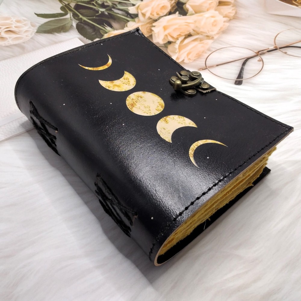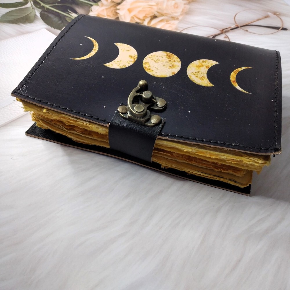 Discover the elegance of our Black Moon Eclipse Leather Diary Journal, a sophisticated writing companion that merges style with functionality. Immerse yourself in the celestial allure of moon-inspired design, coupled with the luxurious touch of genuine leather. This exquisite journal features 200 deckle edge pages, providing a unique and tactile writing experience that sets it apart. The versatile size options of 7*5, 8*6, inches cater to your individual preferences, ensuring the perfect fit for your writing needs. The deckle edge pages not only add a touch of vintage charm but also evoke a sense of craftsmanship, making each entry feel like a timeless masterpiece. Crafted for both form and function, this leather diary journal is equipped with a secure C-lock, offering peace of mind for your valuable thoughts and memories. The sleek and sturdy C-lock ensures that your journal remains closed, safeguarding your personal reflections from the outside world. Whether you're an avid writer, a creative soul, or someone looking for a thoughtful gift, our Black Moon Eclipse Leather Diary Journal is a testament to refined taste and unparalleled quality. Elevate your writing experience with this exquisite journal that seamlessly blends celestial aesthetics with practicality. Embrace the allure of the night sky and capture your moments in style with this Black Moon Eclipse Leather Diary Journal. Order now to indulge in the luxury of premium craftsmanship and embark on a writing journey like never before.