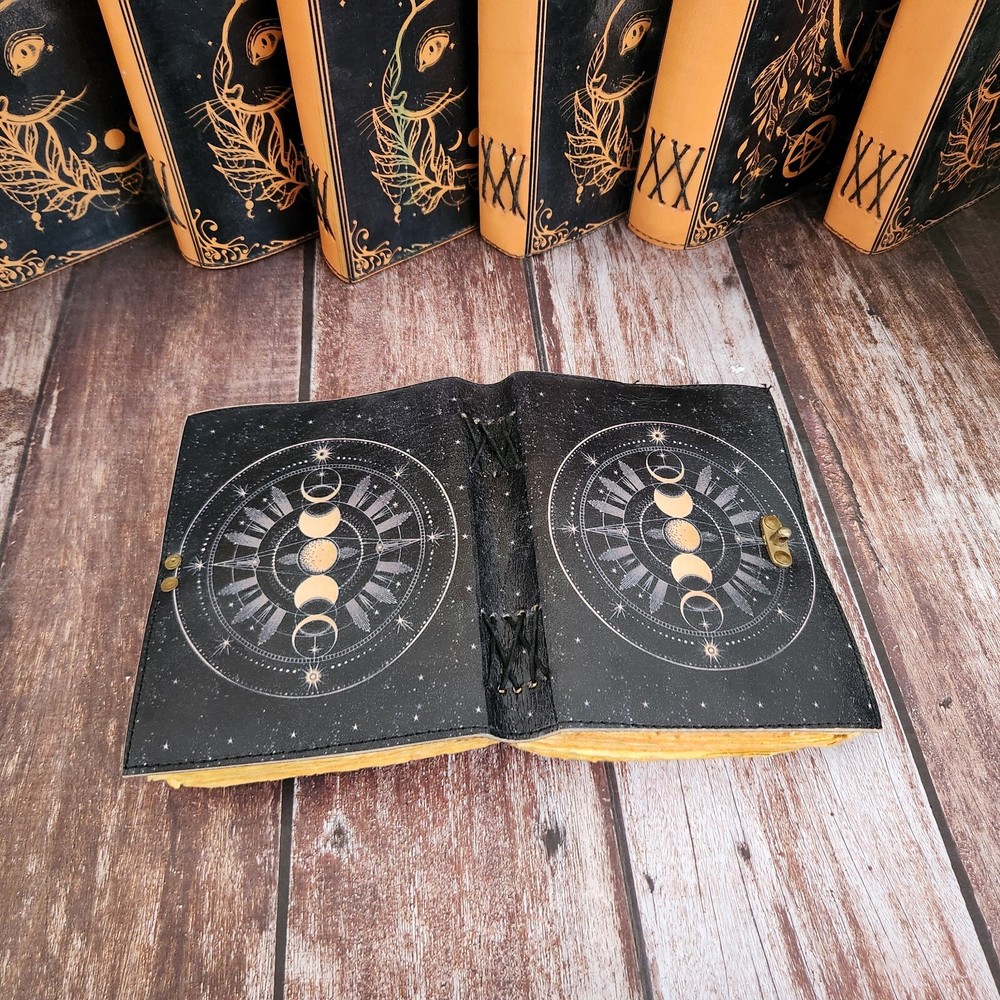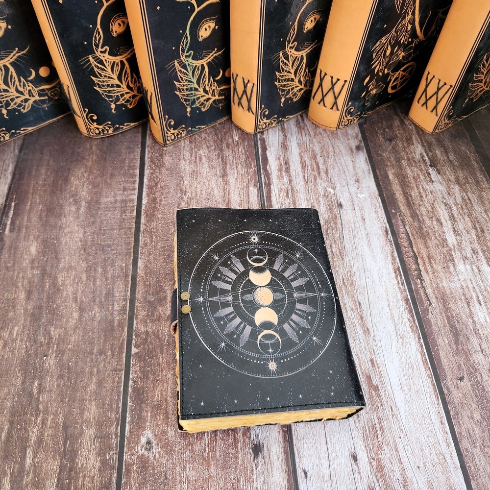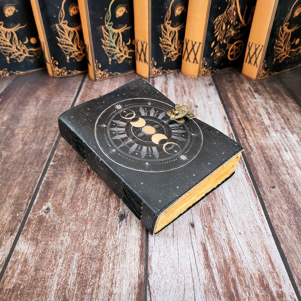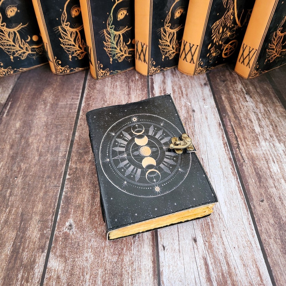 Moon Face Leather Journal, Leather Dairy, Notebook, Sketchbook, Dream Journal, Wedding Gift, Writing Journal, Travel Book, Personalized Gift 1. This exquisite Moon Face Leather Journal is a luxurious addition to anyone's collection of stationery. Crafted from high-quality black leather, this notebook features a stunning gold lock that adds a touch of elegance and sophistication to its design. 2. Perfect for use as a diary, notebook, sketchbook, dream journal, or even a travel book, this versatile piece is ideal for jotting down thoughts, ideas, memories, and more. With 200 deckle pages, there is plenty of space for all your writing and drawing needs. 3. Whether you are looking for a special gift for a loved one or simply want to treat yourself to a personalized item, this Moon Face Leather Journal is sure to impress. The brass lock not only adds a decorative element but also ensures that your private thoughts and musings are kept safe and secure.
