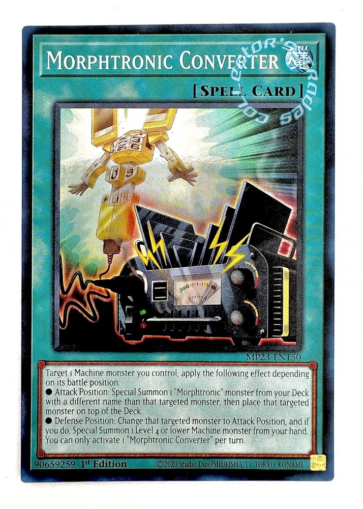 "Morphtronic Converter" MP23-EN150 Super Rare Yu-Gi-Oh! 25th Anniversary Tin: Dueling Heroes Mega Pack Near Mint - "Morphtronic Converter " - - Spell Card (Normal/Effect) - - No.150 - - Super Rare - - 2023 Yu-Gi-Oh! - 25th Anniversary Tin: Dueling Heroes Mega Pack - - 1st Edition - - Normal/Effect - - 100% Authentic Yu-Gi-Oh! - - Near Mint - - Disclaimer- No replacements can or will be shipped in case of missing/broken package. If you have any questions, comments, or concerns, please feel free to contact me. Thank you for your interest in our listings and store and please come again!