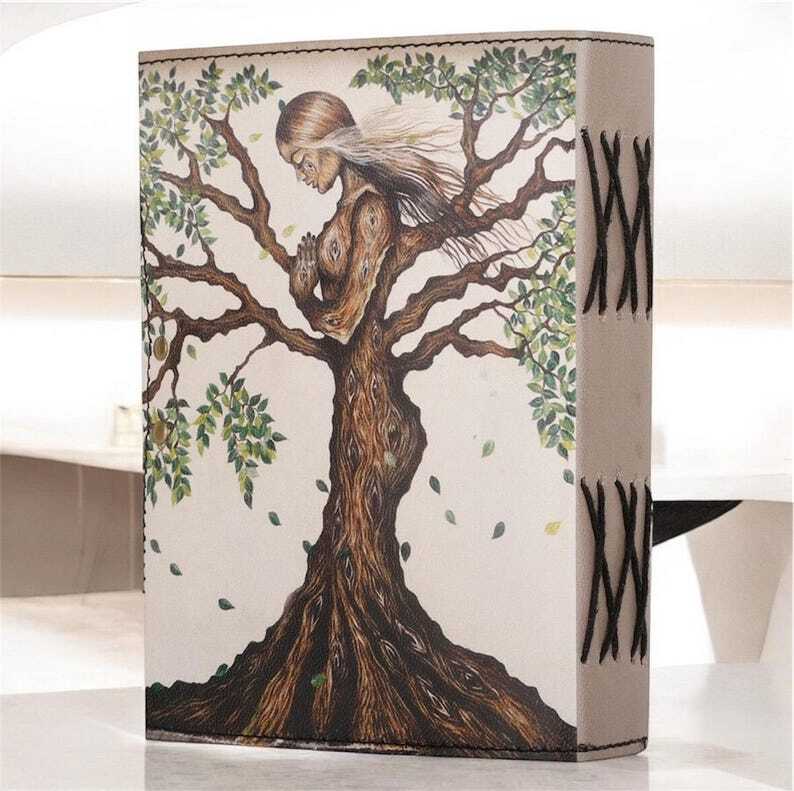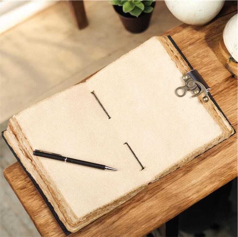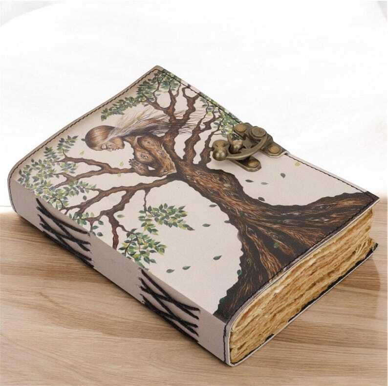 Embrace the essence of nature with our Handmade Tree of Life Leather Journal. Crafted from premium quality leather, this vintage-inspired diary features a meticulously embossed Tree of Life design, symbolizing growth and connection. ↪ Size - 7x5 Inches, 8x6 Inches 10x7 Inches ● Leather journal witchcraft book of shadows notebook is made with Antique Paper which looks like it was pulled from history. You will fall in love with the antique handmade cotton paper which is unique to our Vintage Journal Notebook. ● will keep all your valuable writing locked inside. Sturdy hand stitched binding to make sure that no paper comes out loose from your spell notebook. ● Sketch, Doodle, Write on your Leather Blank Spell Journal with a Calligraphy Pen Fountain Pen, Brush Pen, Ball Pen, Acrylic Colors, Watercolor and many more. We guarantee no bleed through. ● Artist Sketchbooks, Photo Album, Traveling Notes, Business Executive, Logbook, Poetry Work, Journalists, Food Planner, Instagram Scrapbook and Bible Journaling.