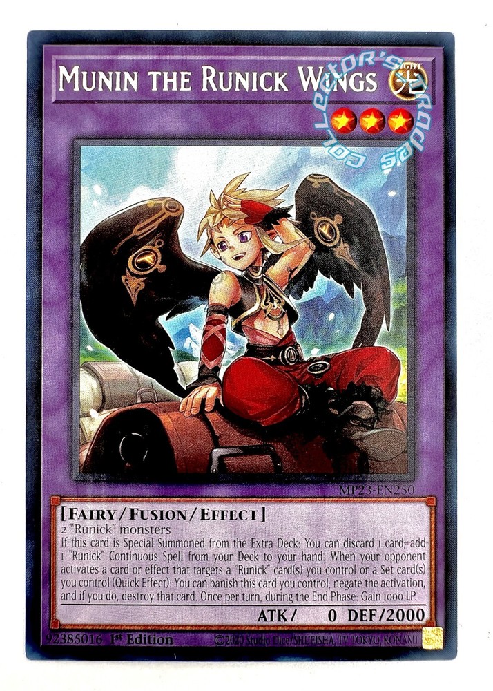 "Munin the Runick Wings" MP23-EN250 Rare Yu-Gi-Oh! 25th Anniversary Tin: Dueling Heroes Mega Pack Near Mint - Level 3 - - Dark Monster - - "Munin the Runick Wings " - - No.250 - - Rare - - 2023 Yu-Gi-Oh! - 25th Anniversary Tin: Dueling Heroes Mega Pack - - 1st Edition – - Fairy/Fusion/Effect - - ATK/0|DEF/2000 - - 100% Authentic Yu-Gi-Oh! - - Near Mint - - Disclaimer- No replacements can or will be shipped in case of missing/broken package. If you have any questions, comments, or concerns, please feel free to contact me. Thank you for your interest in our listings and store and please come again!