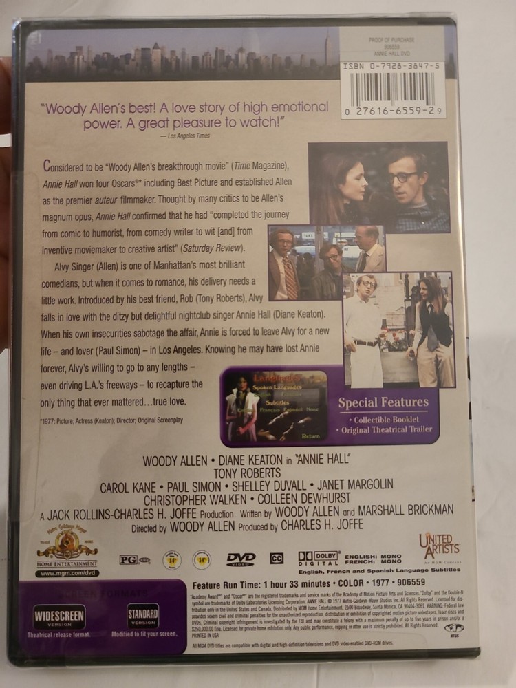 NEW ANNIE HALL WOODY ALLEN, DIANE KEATON Christopher Walken, 1977 DVD Widescreen FACTORY SEALED! See MANY pictures for more MOVIE features and details Only 1 available Ships FREE! Check out my store for more cds, dvds, blurays and more, I list new items daily! THANKS for looking 🙂, and dont forget to add me to your favorite sellers