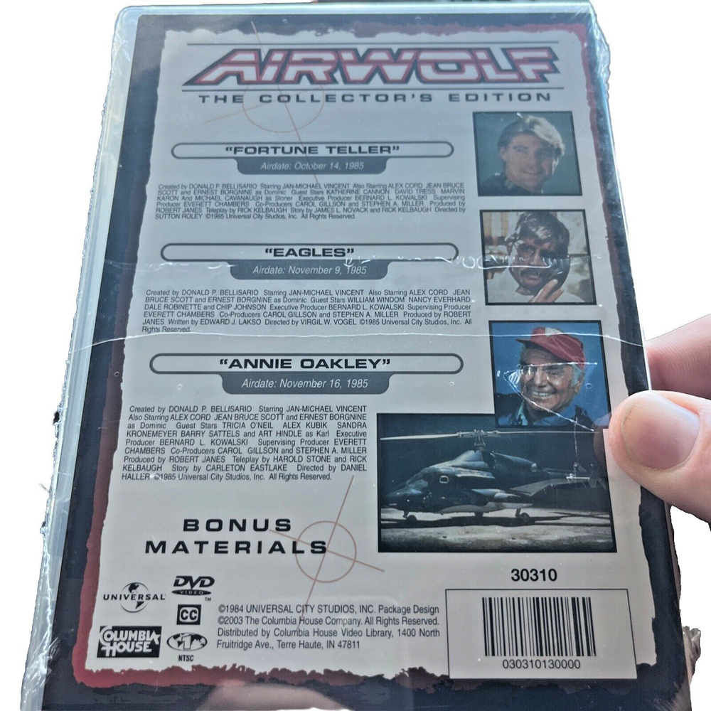 This Airwolf (1984 TV series) Collectors Edition DVD set includes 3 episodes: Fortune Teller, Eagles, and Annie Oakley. This collector's edition is a must-have for fans of the show who want to relive the adventure and excitement of the series.