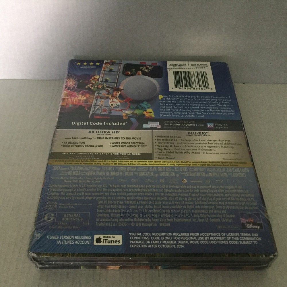 NEW Disney Pixar Toy Story 4 4K UHD + Blu-Ray + Digital Code Movie Sealed with Bonus Book. Great to add to your Movie Collection. New, still sealed in original packaging. Never opened or played. Will ship as Media Mail. 1 business day of handling and 2-8 business days of shipping. Tracking included with media Mail shipment. Thanks for your interest in this item!