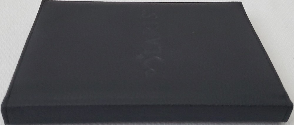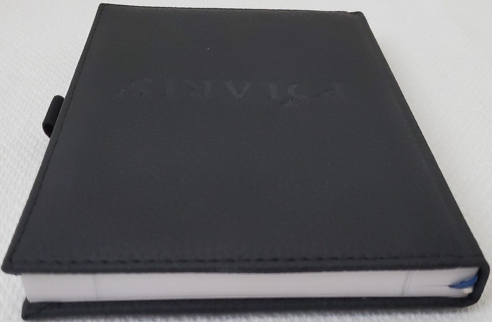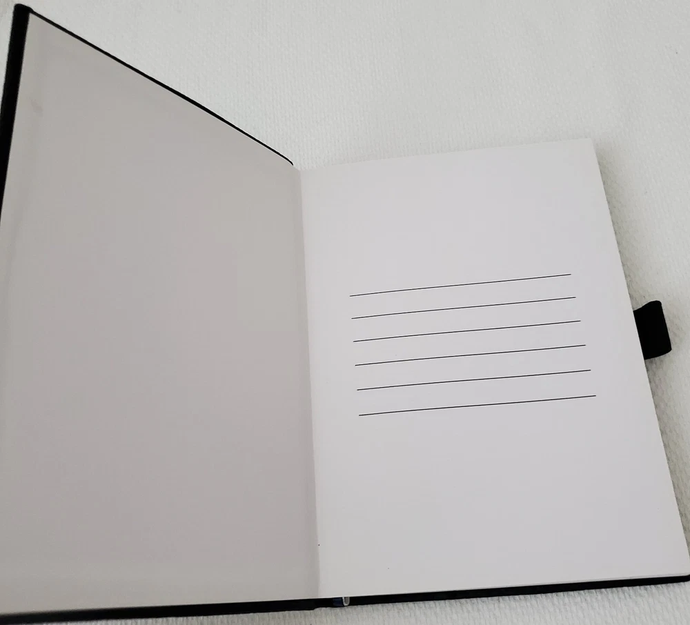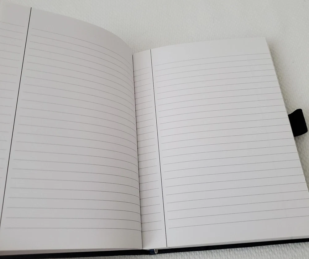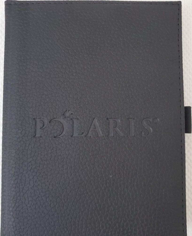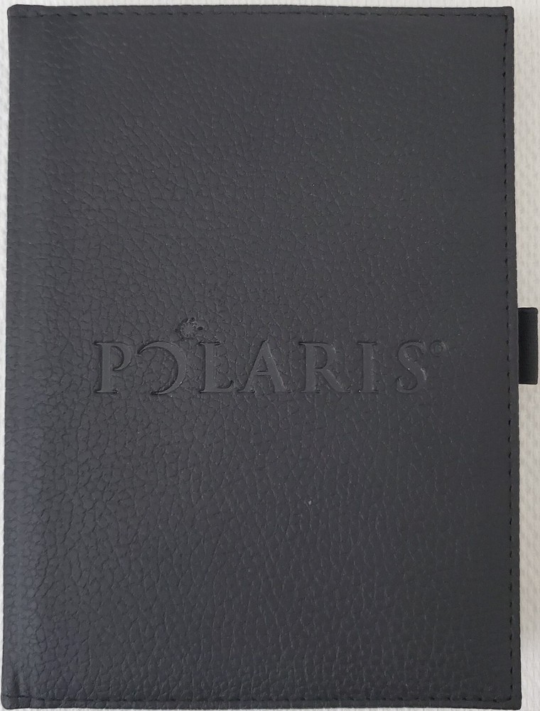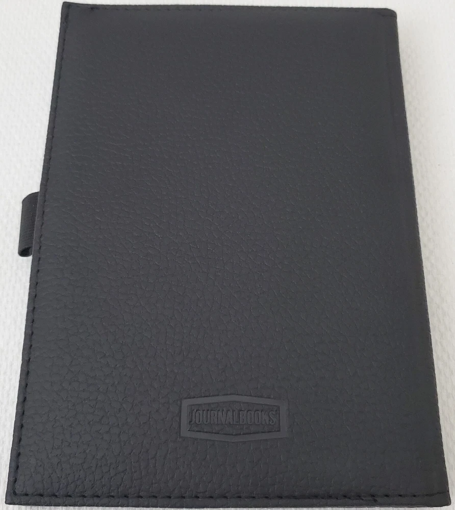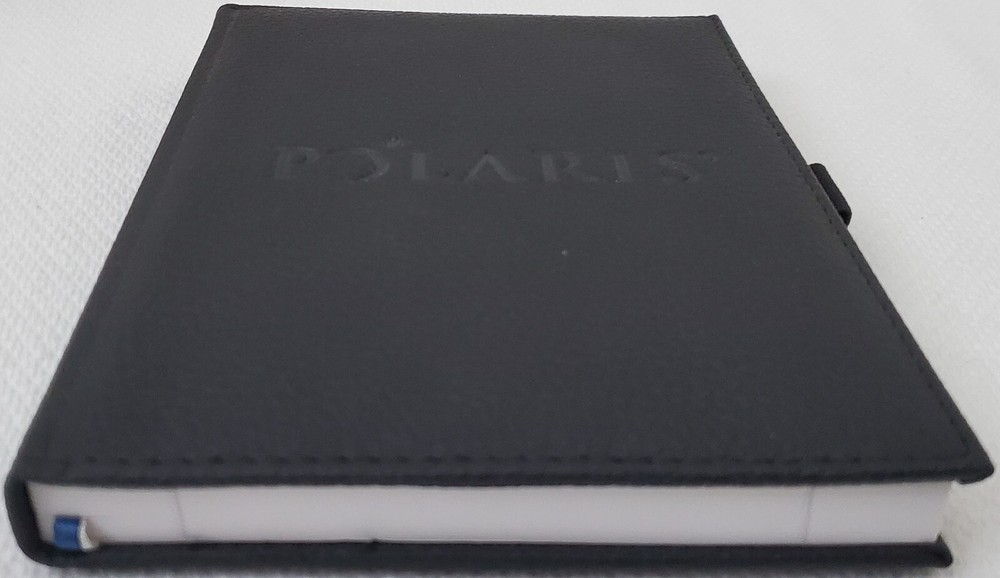 Leed's - Polaris Black Faux Leather Lined Bound Notebook with elastic pen holder on side and ribbon page holder. Notebook measures approximately 7" x 5.25". Item is in new and never used condition, from a smoke and pet free home. Shipped via USPS Ground Advantage.