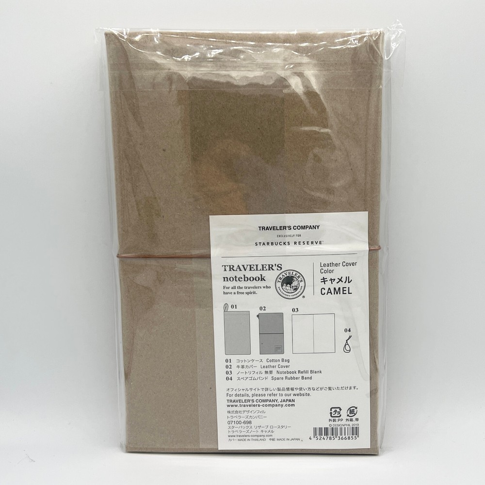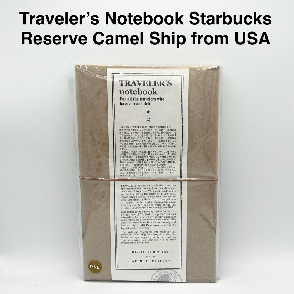 Color: Camel Ship from US Regular Size Brought back from our Japanese Trip Quantity is very limited Contents Outer Box Cotton Case (fabric) Leather Cover (cowhide) Spare Rubber Band Notebook Refill (64 unlined pages, stitch binding) Sizes Outer Box : H150 × W113 × D16 mm Cotton Case : H165 × W120 mm Leather Cover : H134 × W98 × D10 mm Notebook Refill : H124 × W89 × D4 mm Made in Japan Starbucks Reserve® Roastery Tokyo × TRAVELER’S COMPANY™ Traveler’s Notebook™ About Starbucks Reserve® Roastery Tokyo Opened in February 2019, Starbucks Reserve® Roastery Tokyo is the fifth location in the international chain and the first in Japan. This flagship store offers an immersive experience where visitors can engage all their senses with the roasting and brewing processes using unique coffee beans sourced from around the world. It has become a popular destination for coffee aficionados to converse with Starbucks baristas and roasters while enjoying a meticulously curated menu of handcrafted beverages. On February 28th, 2020, Starbucks Reserve® Roastery Tokyo celebrated its first anniversary, marking a year of exceptional coffee experiences. Exclusive Anniversary Collection To commemorate its first anniversary, TRAVELER’S COMPANY™ has collaborated with Starbucks Reserve® Roastery Tokyo to develop a series of original products. This exclusive collection includes specially designed TRAVELER’S notebooks and Spiral Ring Notebooks. Celebrating this milestone, we are proud to introduce the Traveler’s Notebook™ , available in elegant camel and classic blue hues. Each notebook features the Starbucks Reserve® Roastery Tokyo logo imprinted on the premium cowhide leather cover, embodying the spirit of global exploration and refined taste. ________________________________________________________________________________________________ TRAVELER’S COMPANY is a Japanese stationery brand best known for its iconic TRAVELER’S notebook —a customizable, leather-bound journal that evolves with each owner’s adventures. With a deep-rooted philosophy of embracing the analog spirit, TRAVELER’S COMPANY inspires people to document their journeys and daily reflections through handwritten notes, sketches, and keepsakes. At the heart of the brand is a commitment to high-quality craftsmanship and design. Each leather cover is hand-finished to develop character over time, while interchangeable refills and accessories invite personalization. This dedication to detail extends to the entire product lineup, which includes brass pens, charms, stickers, and other travel-inspired stationery. Beyond products, TRAVELER’S COMPANY curates unique experiences at TRAVELER’S FACTORY stores in Japan, creating spaces where customers can discover new ways to record their lives and connect with a community that values creativity, exploration, and meaningful storytelling. Through every notebook, the brand encourages users to slow down, embrace the tactile joy of writing, and capture life’s moments—wherever in the world they may roam.