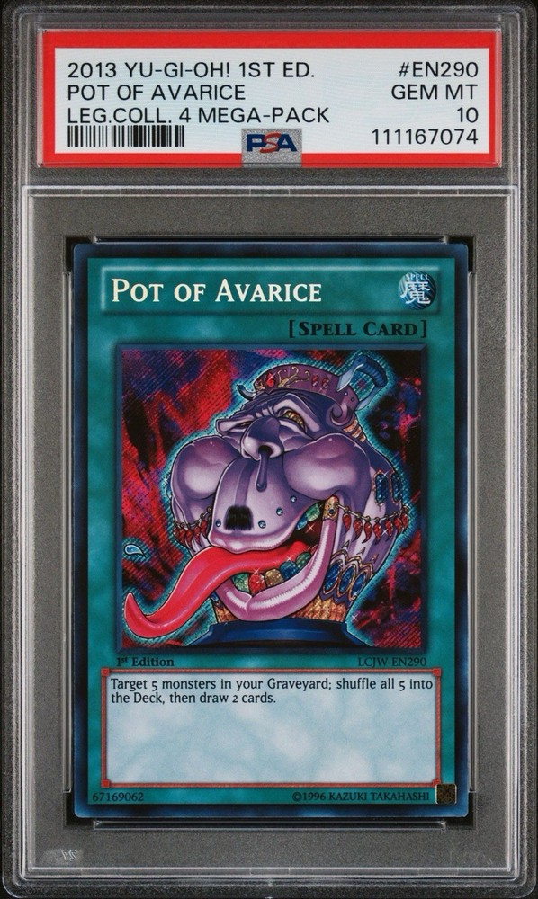 The NM Pot of Avarice LCJW-EN290 card is a highly sought-after collectible item in the Yu-Gi-Oh! TCG world. This Secret Rare card from the Yu-Gi-Oh Legendary Collection 4: Joey's World 1st Edition set features the iconic Pot of Avarice spell, making it a valuable addition to any collector's deck. Produced by Konami and in English language, this card is a must-have for fans of the game looking to enhance their card collection with a rare and powerful spell normal card.