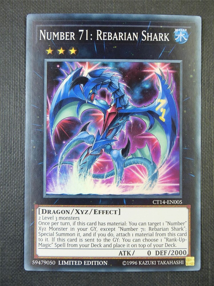 You are bidding on : 1 x Yu-Gi-Oh Mega Tin 2017 NUMBER 71: REBARIAN SHARK (Ultra Rare - Limited Edition) CT14-EN005 All cards are in Near Mint condition unless specified Pictures are stock pictures ONLY it is not of the actual card How we identify the condition of the card: Near Mint: Most of the time cards in this condition are pack fresh but, the card may have minor flaws that are not visible with a quick inspection, small white dots or scratches that you have to closely examine the card to see. Excellent: Overall the card looks near mint but may have minor scratches, slightly worn edges that are visible but they do not interfere with the way the card looks. Lightly Played: Similar to a card in excellent condition except there is more whitening around the edges and the corners are a little more worn or slight bends or creases that are visible. There might be some slight whitening on the back or front of the card. Imperfections will be visible with a quick inspection. When the card is sleeved the imperfections will not be noticeable and the card will look just like the rest of your cards Played: There is a large amount of whitening around the edges and the corners have a good amount of damage, many scratches, bends and/or creases on the card. When the card is sleeved it can still be played Shipping and Handling : Canada Shipping is $1.75 CAD Tracking is offered for $13 CAD BUT tracking is required on any purchases that are over $50 CAD Please contact us for combined shipping if interested in purchasing multiple cards before paying USA Shipping is $2.50 CAD Regular Mail for all orders under $19.99 Shipping is $7.99 CAD with tracking for all orders $19.99 and over Please contact us for combined shipping if interested in purchasing multiple cards before paying INTERNATIONAL Shipping is $5.99 CAD with regular mail Tracking is offered for $29.99 CAD BUT tracking is required for purchases over $50 CAD Please contact us for combined shipping if interested in purchasing multiple cards before you pay Combined shipping: We offer combined shipping: each and every additional item after the first one is only $0.25 (25 cents). To obtain combined shipping fees, please use the shopping cart or ask for the combined shipping invoice BEFORE you pay. If you pay item-by-item, right away after the purchase, we will not be able to offer you combined shipping anymore. Handling Your order will be shipped 1-3 business days after payment has been received *“Business days” are normal weekdays. Saturdays, Sundays, and major holidays do not count as business days. Cards purchased are packaged and shipped in a sleeve, toploaders, a team bag and an envelope to ensure protection of cards Payment : We accept payment via PayPal only. Payments should be made within 5 days after purchase Epic Cards and Games Any questions feel free to email us and allow 1 day for a response. Thanks for looking! Sales Tax (Canada Only) : Purchases made by Canadian residents are subject to applicable GST/HST, depending on your province/territory. (If you do not agree to this, please do not bid. We have a registered business in Canada and are required by law to charge taxes to anything shipped within the country.) Thank you for shopping with Epic Cards and Games