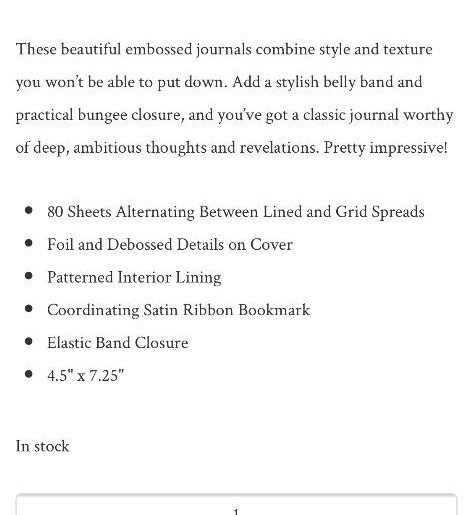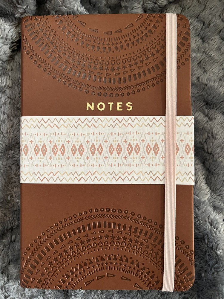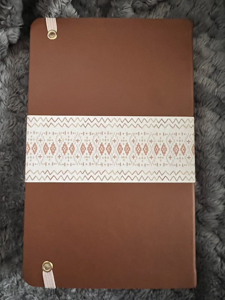 This stylish faux leather notebook is perfect for journaling or jotting down ideas! The bungee closure keeps everything secure, and the alternating lined/grid pages add versatility. Love the embossed design and satin ribbon bookmark—great quality for the price. Super portable size too!
