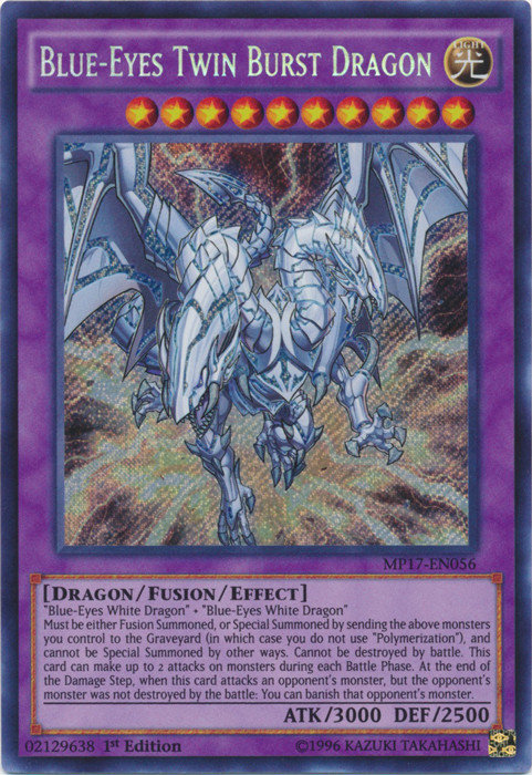 Listing Information Quantity You Will Receive: 1 Product Name: Blue-Eyes Twin Burst Dragon - MP17-EN056 - Secret Rare - 1st Edition Product Set: MP17 Mega Pack 2017 Product Condition: Near Mint Important Item Picture Information Listing photos are stock photos unless clearly indicated otherwise! They are for identification purposes and are not pictures of the actual card(s) you will receive! In case of minor discrepancies between the stock photo and listing title (e.g., "1st edition" vs. "Unlimited"), the listing title takes precedence. We will provide scans for products priced at $100 and above. For cards priced under $100 please refer to the condition guide below to set proper expectations. Condition Guide We condition cards using TCGplayer's condition guide. Below are TCGplayer's descriptions for each condition. Scan the QR code below to view TCGplayer's full Card Conditioning Standards. Near Mint : "Cards in Near Mint (NM) condition show minimal wear from shuffling, play or handling and can have a nearly unmarked surface, crisp corners and unblemished edges outside of a few slight flaws. A Near Mint card may have slight edge wear or a scratch or three, but overall look nearly unplayed with no major defects." Light Play : "Cards in Lightly Played (LP) condition may have minor border or corner wear, scuffs or scratches. There are no major defects such as grime, bends or issues with the structural integrity of the card. Noticeable imperfections are okay, but none should be too severe or at too high a volume." Moderate Play : "Cards in Moderately Played (MP) condition can have border wear, corner wear, scratching or scuffing, creases or whitening or any combination of moderate examples of these flaws." Heavy Play : "Cards in Heavily Played (HP) condition show a major amount of wear. Cards can show a variety of moderate imperfections along with creasing, whitening and bends. Heavily Played cards can also have flaws that impact the integrity of the card, but the card can still be sleeve playable." DAMAGED : "Damaged cards show wear or imperfections beyond the standards for other conditions. Cards in Damaged condition can also exhibit an imperfection that may make the card illegal for tournament play, even in a sleeve. Cards in Damaged condition may have major border wear, corner wear, scratching or scuffing, as well as folds, creases, tears or other damage that impacts the structural integrity of the card." Shipping Policies Domestic orders eligible for eBay Standard Envelope service will be shipped in a plain white envelope. Domestic orders ineligible for eBay Standard Envelope service will be shipped in a padded mailer using USPS Ground Advantage service. International orders will be shipped using eBay International Shipping service. We do not offer any other international shipping services at this time. eBay determines the cost for this service. No discounts are available. Import duties, taxes, and charges aren't included in the item price or postage cost. These charges are the buyer's responsibility. Please check with your country's customs office to determine what these additional costs will be prior to buying. Next time you're in the Philadelphia area, visit our stores located in Holmes, PA, East Norriton, PA, and Wilmington, DE!