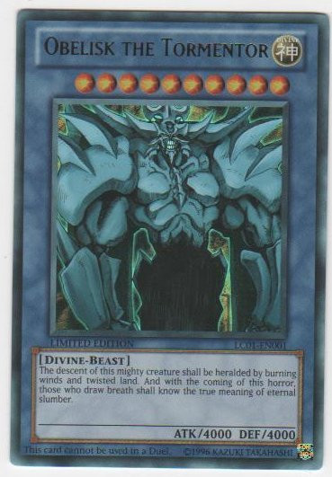 Listing Information Quantity You Will Receive: 1 Product Name: Obelisk the Tormentor - LC01-EN001 - Ultra Rare - Limited Edition Product Set: LC01 Legendary Collection Product Condition: Near Mint Important Item Picture Information Listing photos are stock photos unless clearly indicated otherwise! They are for identification purposes and are not pictures of the actual card(s) you will receive! In case of minor discrepancies between the stock photo and listing title (e.g., "1st edition" vs. "Unlimited"), the listing title takes precedence. We will provide scans for products priced at $100 and above. For cards priced under $100 please refer to the condition guide below to set proper expectations. Condition Guide We condition cards using TCGplayer's condition guide. Below are TCGplayer's descriptions for each condition. Scan the QR code below to view TCGplayer's full Card Conditioning Standards. Near Mint : "Cards in Near Mint (NM) condition show minimal wear from shuffling, play or handling and can have a nearly unmarked surface, crisp corners and unblemished edges outside of a few slight flaws. A Near Mint card may have slight edge wear or a scratch or three, but overall look nearly unplayed with no major defects." Light Play : "Cards in Lightly Played (LP) condition may have minor border or corner wear, scuffs or scratches. There are no major defects such as grime, bends or issues with the structural integrity of the card. Noticeable imperfections are okay, but none should be too severe or at too high a volume." Moderate Play : "Cards in Moderately Played (MP) condition can have border wear, corner wear, scratching or scuffing, creases or whitening or any combination of moderate examples of these flaws." Heavy Play : "Cards in Heavily Played (HP) condition show a major amount of wear. Cards can show a variety of moderate imperfections along with creasing, whitening and bends. Heavily Played cards can also have flaws that impact the integrity of the card, but the card can still be sleeve playable." DAMAGED : "Damaged cards show wear or imperfections beyond the standards for other conditions. Cards in Damaged condition can also exhibit an imperfection that may make the card illegal for tournament play, even in a sleeve. Cards in Damaged condition may have major border wear, corner wear, scratching or scuffing, as well as folds, creases, tears or other damage that impacts the structural integrity of the card." Shipping Policies Domestic orders eligible for eBay Standard Envelope service will be shipped in a plain white envelope. Domestic orders ineligible for eBay Standard Envelope service will be shipped in a padded mailer using USPS Ground Advantage service. International orders will be shipped using eBay International Shipping service. We do not offer any other international shipping services at this time. eBay determines the cost for this service. No discounts are available. Import duties, taxes, and charges aren't included in the item price or postage cost. These charges are the buyer's responsibility. Please check with your country's customs office to determine what these additional costs will be prior to buying. Next time you're in the Philadelphia area, visit our stores located in Holmes, PA, East Norriton, PA, and Wilmington, DE!