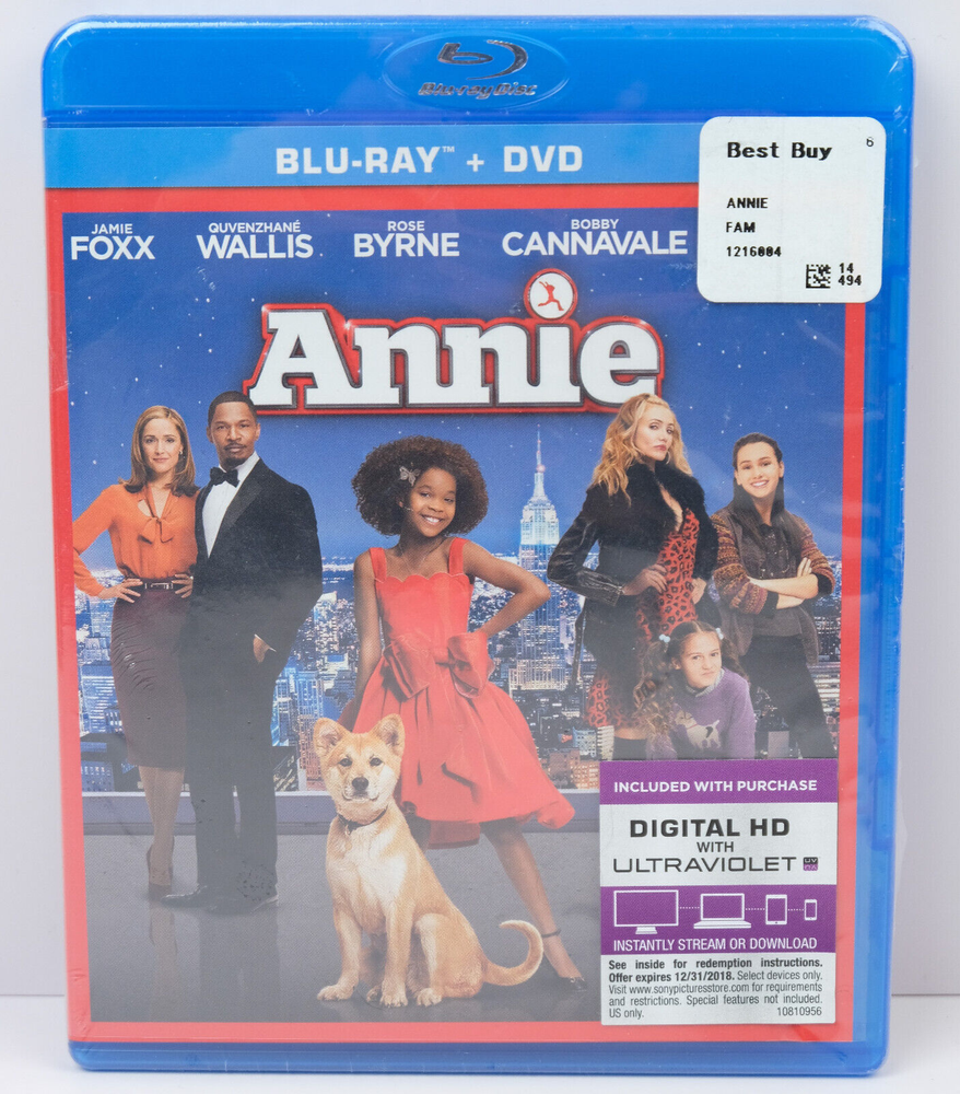 Brand new and unopened Blu-ray + DVD copy of Annie (2014). There is a tear in the plastic packaging; please see photos for details.