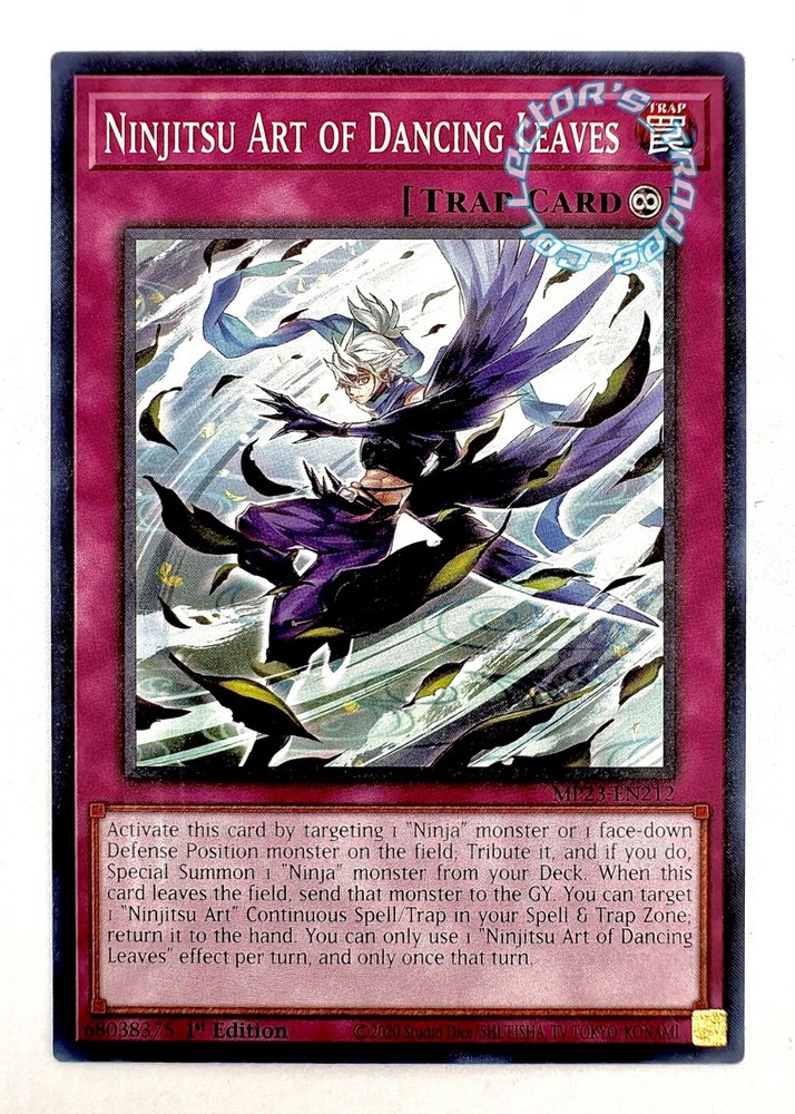 " Ninjitsu Art of Dancing Leaves" MP23-EN212 Common Yu-Gi-Oh! 25th Anniversary Tin: Dueling Heroes Mega Pack Near Mint - "Ninjitsu Art of Dancing Leaves " - - Trap Card (Continuous/Effect) - - No.212 - - Common - - 2023 Yu-Gi-Oh! - 25th Anniversary Tin: Dueling Heroes Mega Pack - - 1st Edition - - Continuous/Effect - - 100% Authentic Yu-Gi-Oh! - - Near Mint - - Disclaimer- No replacements can or will be shipped in case of missing/broken package. If you have any questions, comments, or concerns, please feel free to contact me. Thank you for your interest in our listings and store and please come again!