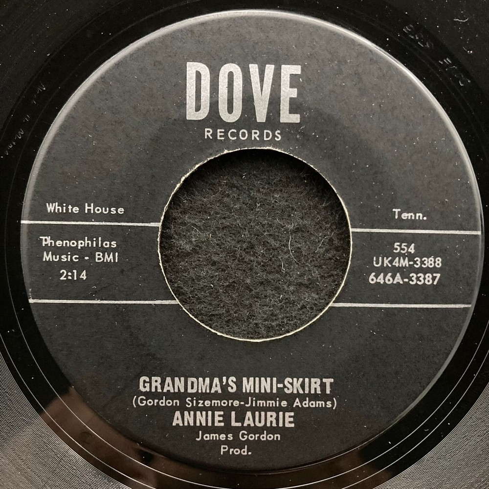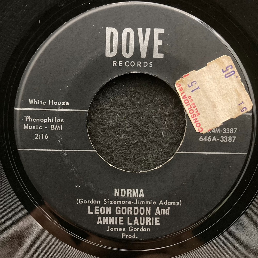 Format: 7" Country of Issue: US Artist: Leon Gordon & Annie Laurie "A" Side: Norma (Gordon & Laurie) "B" Side: Grandma's Mini-Skirt (Laurie) Label and catalog#: Dove 554 Disc Grade (vinyl): VG Label Grade: VG+ (price sticker) Sleeve Type (grade if PS): generic Notes: Payment is only by Ebay's payment system; no cash payments accepted. Shipping is $4 for the first disc, 25 cents extra per additional disc up to $10 (for 27 or more records; maximum shipping charge) in the US. Please use the photo(s) to help you determine the condition of the record. Please note that this will be shipped USPS Media Mail; this can take up to a week to ship depending on your distance from us (Central KY). We offer a full 14 day return policy if you are not satisfied with your purchase. Buy with confidence; check out our great feedback! Any questions please contact us. Thanks for you interest; enjoy your record(s)!