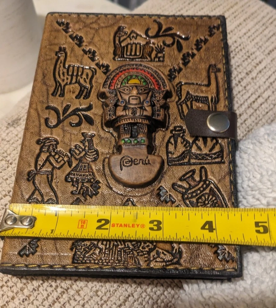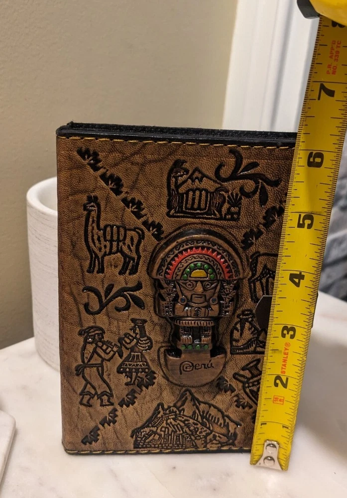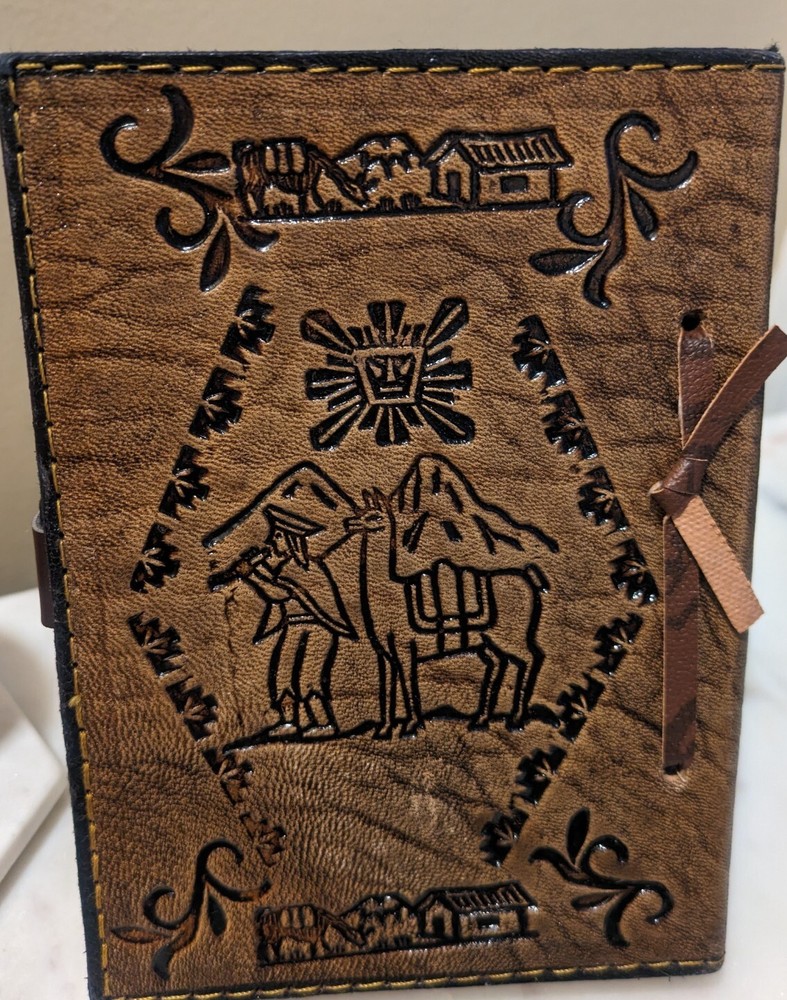 Beautiful Handmade Leather Bound Notebook from Arequipa Peru is the perfect addition to any collection. The intricate designs on the cover are a tribute to the rich Peruvian culture, making it a unique and special item. Inside are lined pages, whether you plan to use it for journaling, sketching, or as a decorative piece, it is sure to impress.