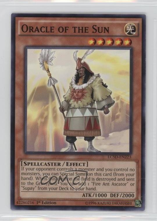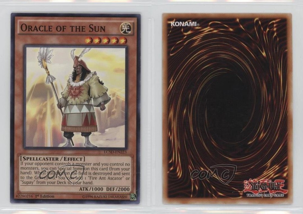 2014 Yu-Gi-Oh! Legendary Collection 5Ds - Mega-Pack [Base] - 1st Edition #LC5D-EN223 Oracle of the Sun COMC Item: 29798504 - YuGiOh Card - Featuring Oracle of the Sun Search for more: 2014 Yu-Gi-Oh! Legendary Collection 5Ds Search for more: 2014 Yu-Gi-Oh! Legendary Collection 5Ds - Mega-Pack [Base] - 1st Edition View all of our Listings Auctions Buy It Now About Us Located in the beautiful Pacific Northwest, COMC (Check Out My Cards) is the world's largest consignment service for trading card singles. More than 10,000 people have used our consignment service to list over 50 million trading cards. Find out how we can help you consign your items on eBay by contacting us through eBay messaging. COMC -- "The Safe & Easy Way to Buy & Sell" Raw Condition for Modern Cards Unless otherwise noted, raw modern cards are listed in Near Mint-Mint condition or better. A NM-MT card appears to be Mint at first glance, but upon closer inspection, may exhibit some of the following: minor print defects (e.g. roller marks, print line, dimple), minor scratches, slight edge wear, and slight corner wear. Centering is clearly visible in the images provided and does not factor into our condition assessment. Raw Condition for Vintage Cards Unless otherwise noted, raw vintage cards are listed in Excellent condition or better. An EX card may exhibit some of the following: minor rounding of corners, surface wear, print defects, light scratches, and slight edge wear/chipping. Centering is clearly visible in the images provided and does not factor into our condition assessment. Domestic Shipping Combined shipping for multiple items is available. To receive combined shipping, please ensure all desired items are in your eBay shopping cart before proceeding to checkout. eBay limits orders to 40 items per order. We automatically combine multiple orders placed on the same day. If you place multiple orders on the same day, please contact us to request a refund of applicable shipping costs. Signature confirmation may be required on invoices over $400. All cards are protected and shipped securely. International Shipping COMC offers eBay's International Shipping (EIS) for international orders under $2,500* (see country exceptions below). All duties and import fees are paid at checkout; in the rare event that there are additional import fees upon delivery, these are borne by the buyer. EIS packages route through a shipping hub in Erlanger, KY before shipping to their final destination. Please note that EIS does not allow for combined shipments. The shipping rates are determined by eBay and cannot be adjusted. *Maximum sale price exceptions: Colombia, Kuwait ($2,000); Taiwan ($1,539); Chile, Costa Rica, Guatemala, Honduras, Trinidad and Tobago ($1,000); Antigua and Barbuda, Aruba, Belize, Dominica, Grenada, Philippines, Saint Kitts and Nevis, Saint Lucia, Montserrat, Turks and Caicos Islands ($500); Dominican Republic, El Salvador ($200). Please request a shipping quote through eBay messaging for orders that exceed the maximum sale price supported by eBay's International Shipping. You will be responsible for all duties and import fees for international orders shipped outside the EIS. All cards are protected and shipped securely. Payment COMC does not accept offers on our cards through our eBay storefront. COMC utilizes eBay’s managed payments system. If you are experiencing difficulties making a payment, please contact eBay for assistance. Return Policy Returns are only accepted on the rare occasion the item is not as described. If you are making a return, please initiate the return process through eBay so a mailing label can be provided for you. Prior to listing, our expert team carefully assessed this item to represent it accurately. Please review the description and high-definition images prior to purchasing to ensure this item meets your satisfaction. We welcome you to contact us if you have further questions about this item. Trust and Integrity COMC carefully assesses each item consigned to us to prevent fraudulent items from entering the marketplace. If you believe an item offered on COMC may be fraudulent, please contact us with details so we can investigate the issue. Items we determine are outside our supported items policy may be removed. Last Modified: 6/3/2025 4:11:51 PM PDT