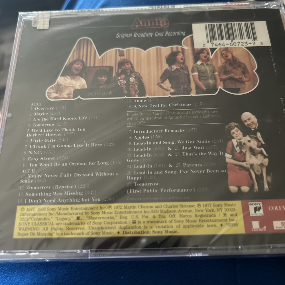This brand-new, sealed CD of the Original Cast Recording of Annie is a must-have for musical fans! The timeless songs sound amazing, and it arrived in perfect condition. Fast shipping and great sellerโhighly recommend!