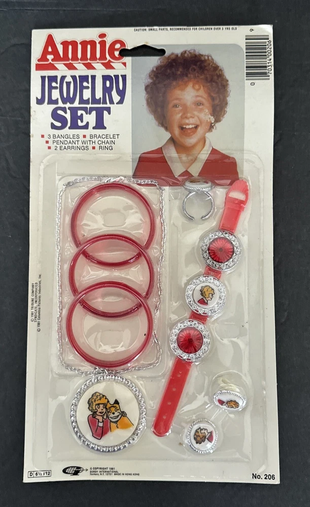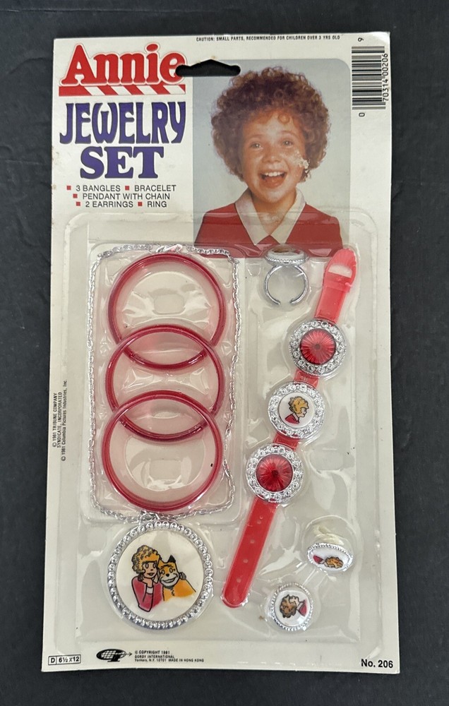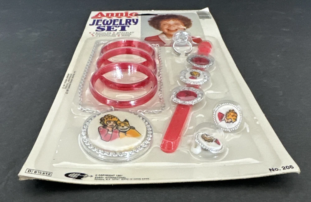 Little Orphan Annie Jewelry Set 8 Piece Brand New 1981 Gordy International. Please see pictures of this hard to find collectible item. Thanks for visiting !!