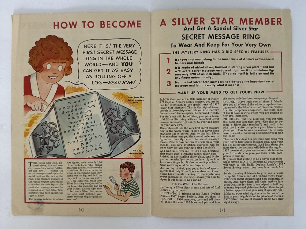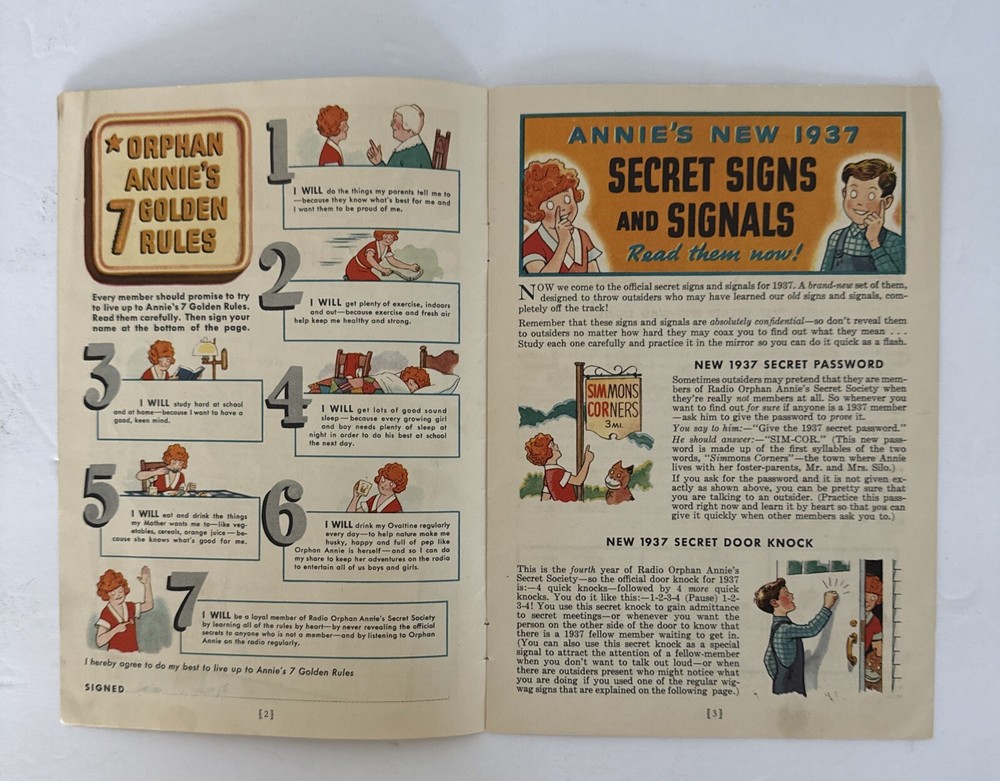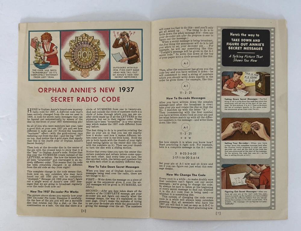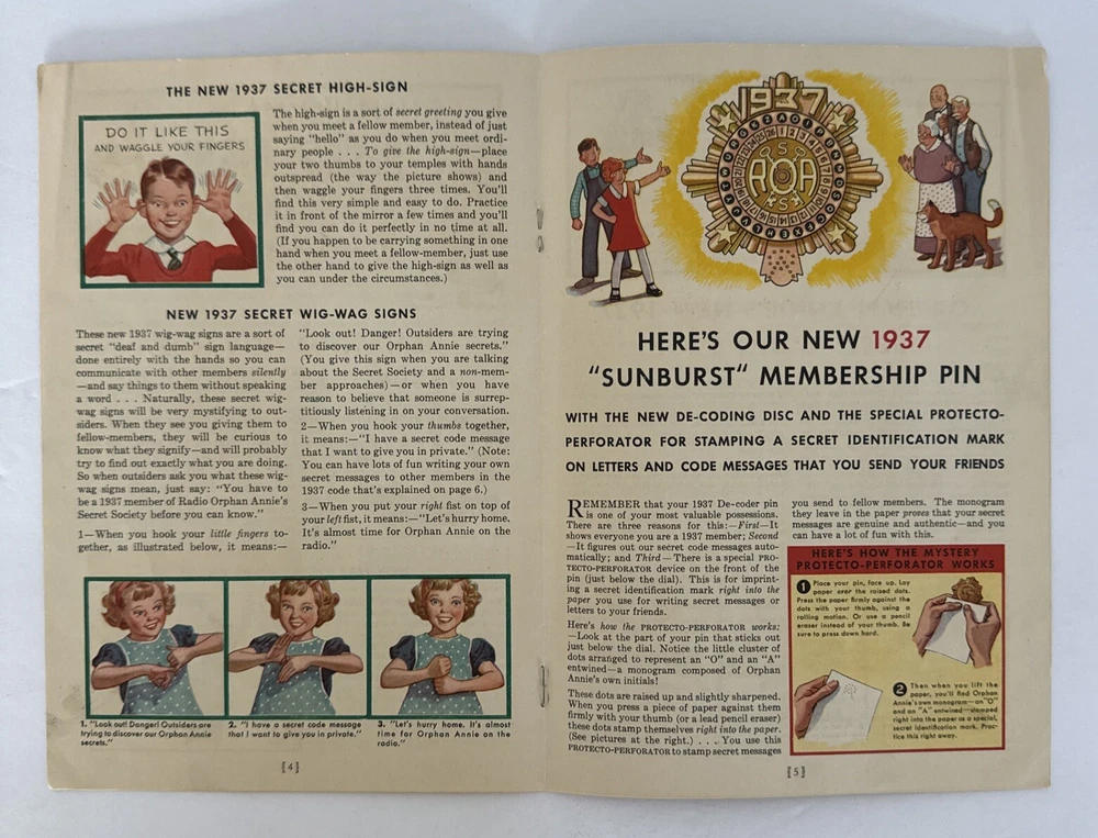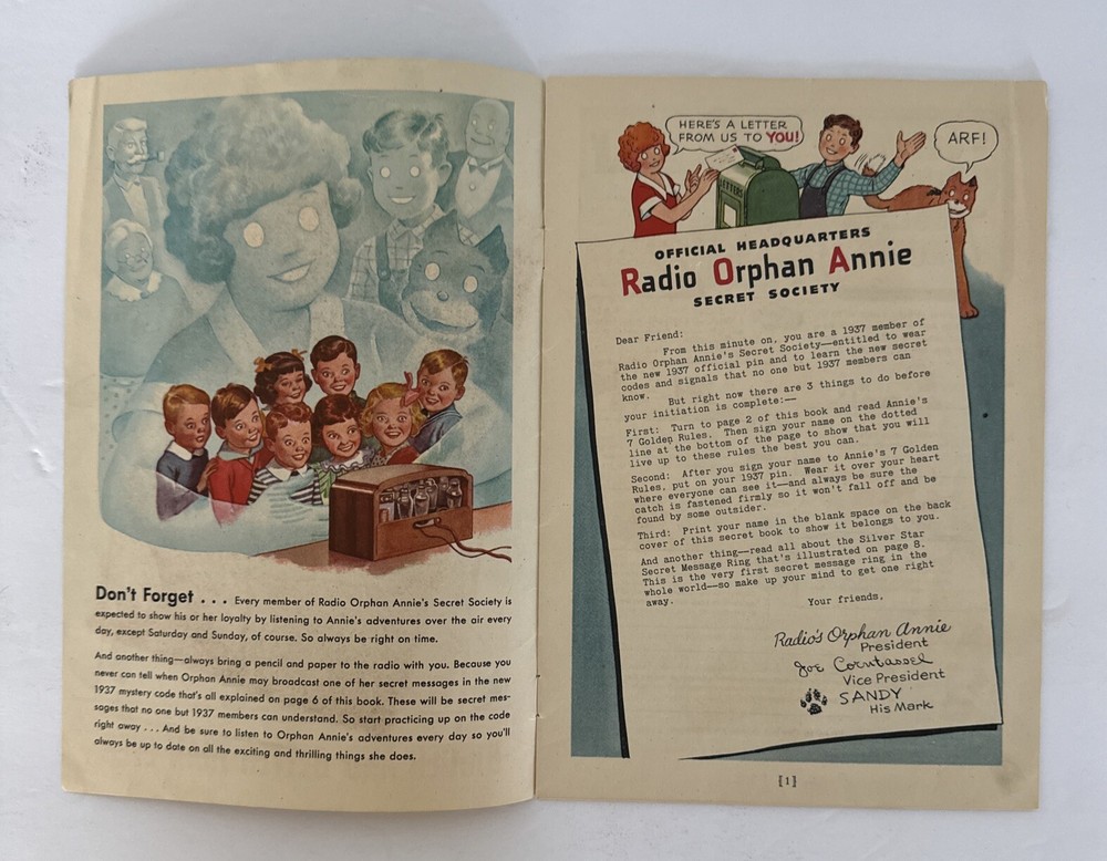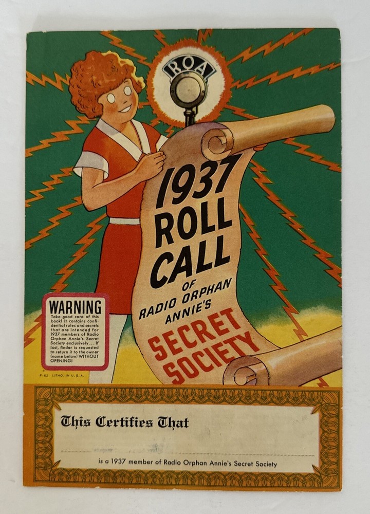 This is a rare and collectible manual for the 1937 Radio Orphan Annie Secret Society Club. It is a vintage item that was made in the United States and is perfect for fans of the iconic character. The manual is suitable for ages 12 and up, and contains valuable information about the society and its members. It is a must-have for any serious collector of vintage toys and accessories. Please see pictures of this highly collectible piece. Thanks for visiting !! Measurements: 9” x 6”