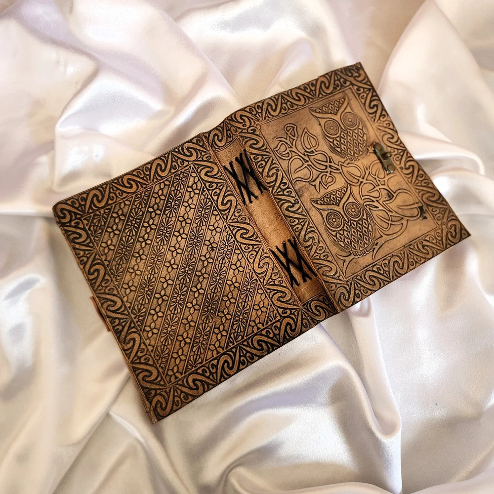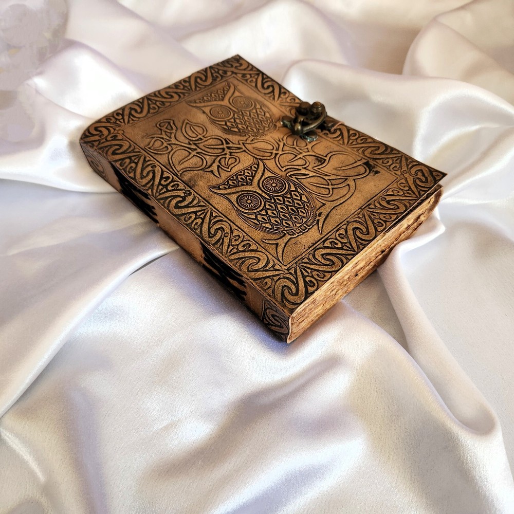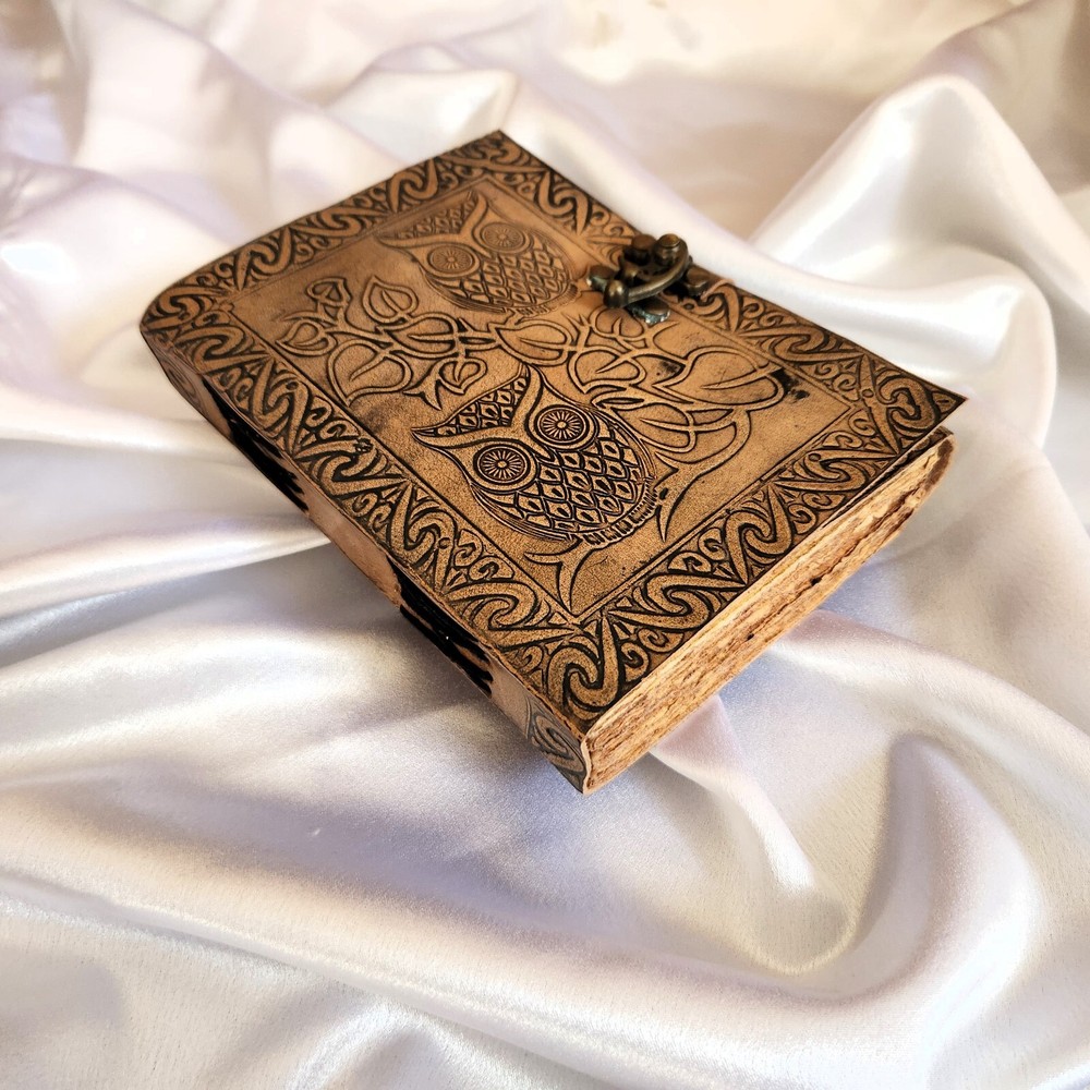 Owl Embossed Leather Journal, Leather Dairy, Notebook, sketchbook, Writing Journal, Wedding Gift, Journal, [Handmade] Personalized Gift. 1. This exquisite Owl Embossed Leather Journal is a must-have for anyone who appreciates fine craftsmanship and elegant design. The leather cover adds a touch of sophistication, while the intricate owl design gives it a unique and whimsical charm. 2. Perfect for use as a diary, notebook, sketchbook, or writing journal, this versatile piece is sure to become a cherished item for years to come. The 200 deckle edge pages provide ample space for all your thoughts, ideas, and sketches, while the brass lock ensures that your private thoughts remain secure. 3. Whether you're looking for a thoughtful wedding gift or a personalized present for a loved one, this handmade leather journal is sure to impress. Its timeless design and high-quality materials make it a truly special gift that will be treasured for a lifetime.