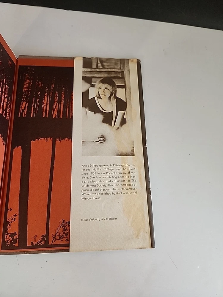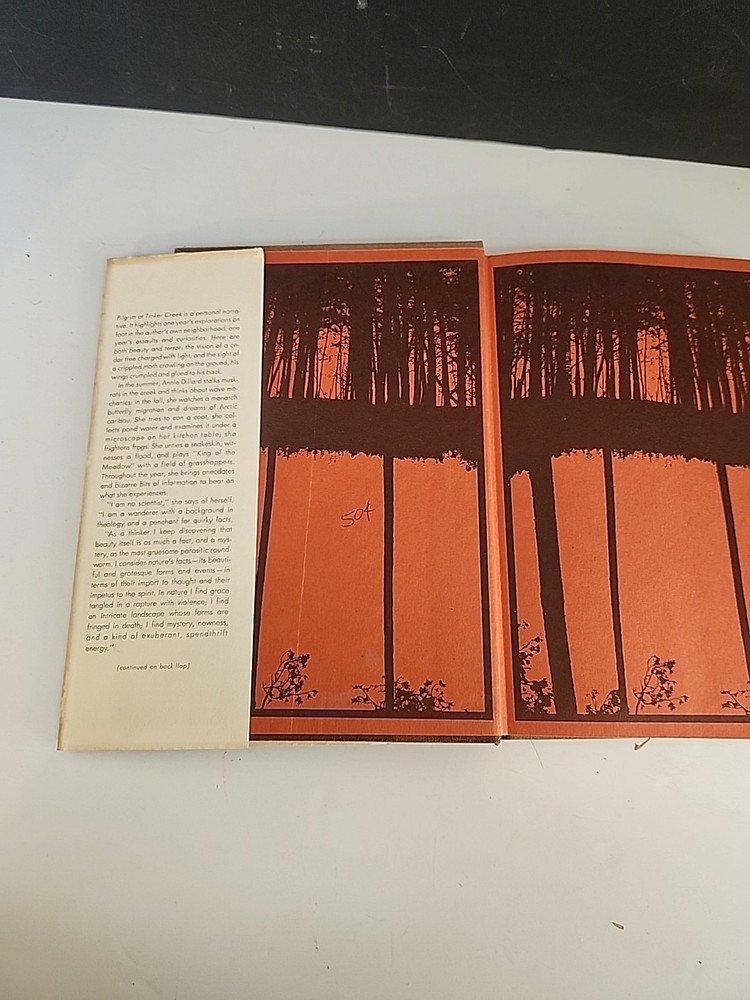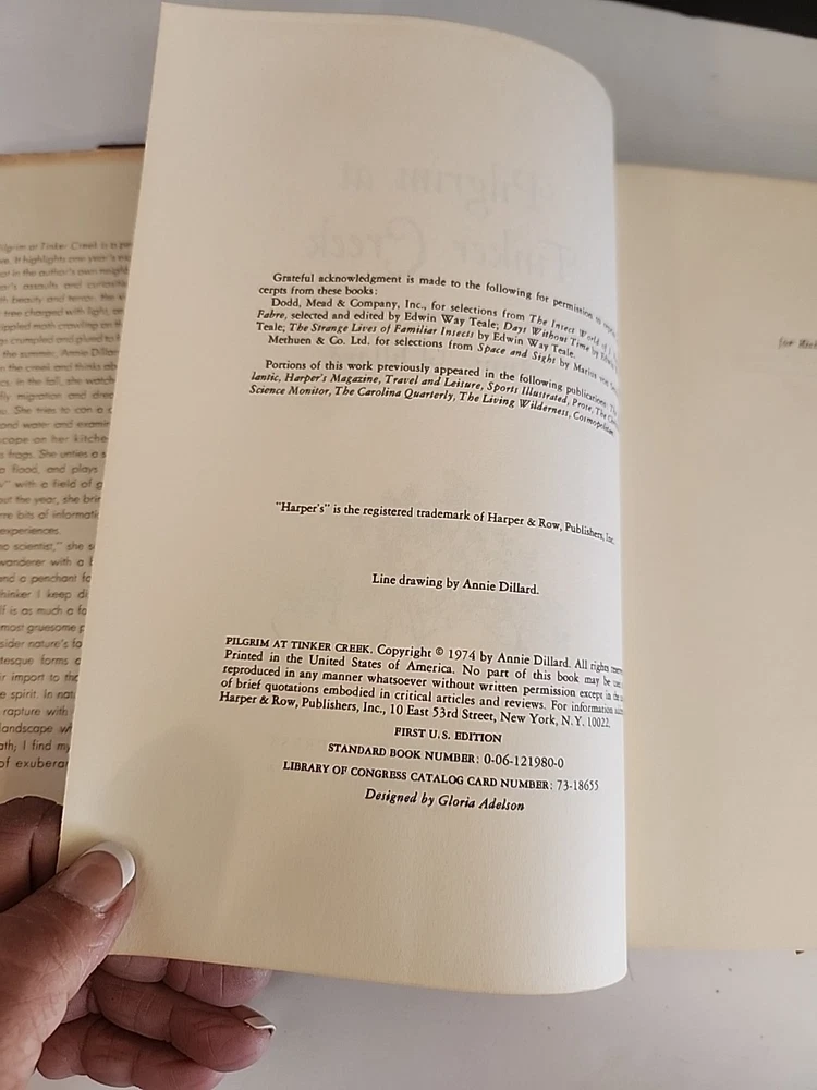 "Pilgrim at Tinker Creek" by Annie Dillard is a vintage 1975 Pulitzer Prize winner that is a first edition hardcover with a dust jacket. This literary memoir explores essays on subjects such as nature, beauty, and the human condition, making it a compelling read for adults. The book, published by HarperCollins in the USA, features 232 pages of Dillard's insightful narrative, which is sure to captivate readers with its literary collections genre.