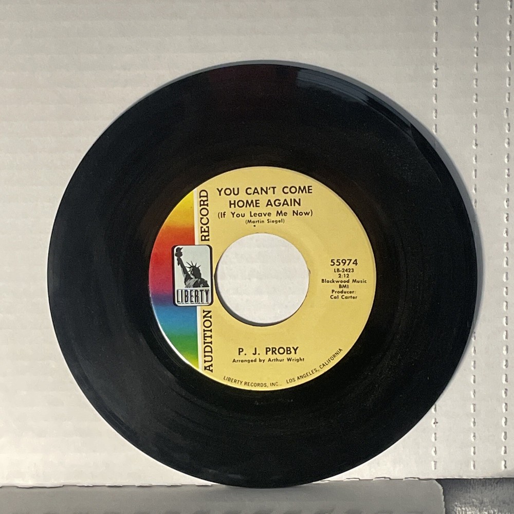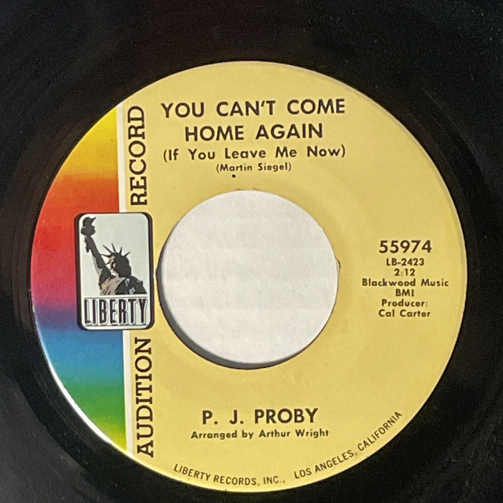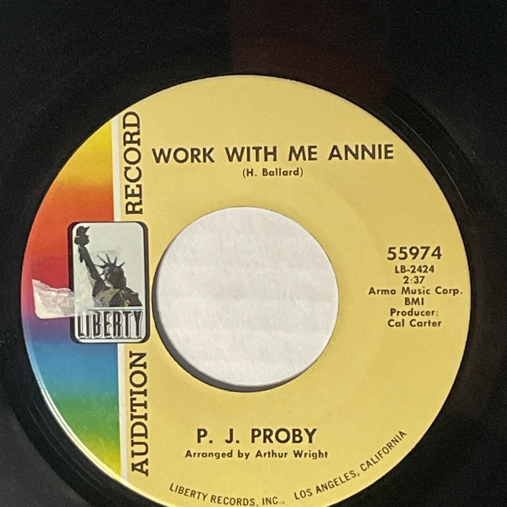 PJ Proby You Can't Come Home Again, Work With Me Annie 7" 45 Liberty Promo Copy from the library of a defunct radio station; does not include original sleeve; has been stored in replacement sleeve; excellent playback with clean disc surface