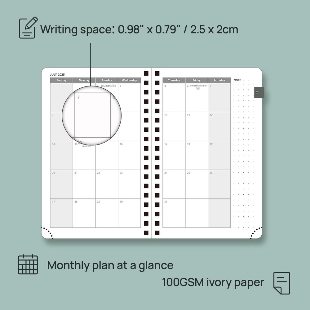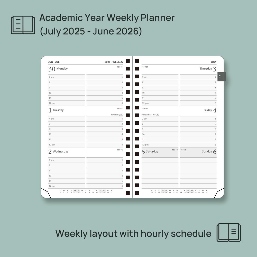 POPRUN Pocket Planner Pocket-4'' x 6.25'', Purple Product Details Manufacturer: COMIX INTSERV TECH LIMITED Brand: POPRUN Item Weight: 6.7 ounces Package Dimensions: 6.34 x 4.53 x 0.75 inches Color: Purple Material Type: Faux Leather Size: Pocket-4'' x 6.25'' Manufacturer Part Number: 2026-AWELA6-PE Brand: POPRUN Color: Purple Year: 2025 Format: Organizer, Notebook Material: Faux Leather Binding: Spiral-bound Manufacturer: COMIX INTSERV TECH LIMITED PORTABLE POCKET SIZE - A compact 4" x 6.25" design that fits seamlessly into your purse or pocket, ensuring it’s easy to carry and use on-the-go. Tailored to align perfectly with students’ academic schedules from July 2025 to June 2026. VERTICAL HOURLY LAYOUT – The weekly layout includes ample space to write (from 7:00am to 6:00pm). A week is laid to view on 2 pages. Each monthly layout contains an overview of the month and a notes section. QUICK SEARCH FUNCTION - Effortlessly navigate with a flexible "TODAY" ruler and monthly tabs. Tear-off corners and bookmark ribbons allow you to mark important pages at your convenience. EXTRA FUNCTION PAGES - Includes a 2025-2026 Yearly Overview, Holiday & Calendar, Monthly Expenses, Contact & Password pages, and 7 dotted notes pages for detailed jotting. HIGH-QUALITY PAPER - Crafted with 100GSM FSC-certified paper from sustainable forests, ensuring a smooth, ink-resistant writing experience.