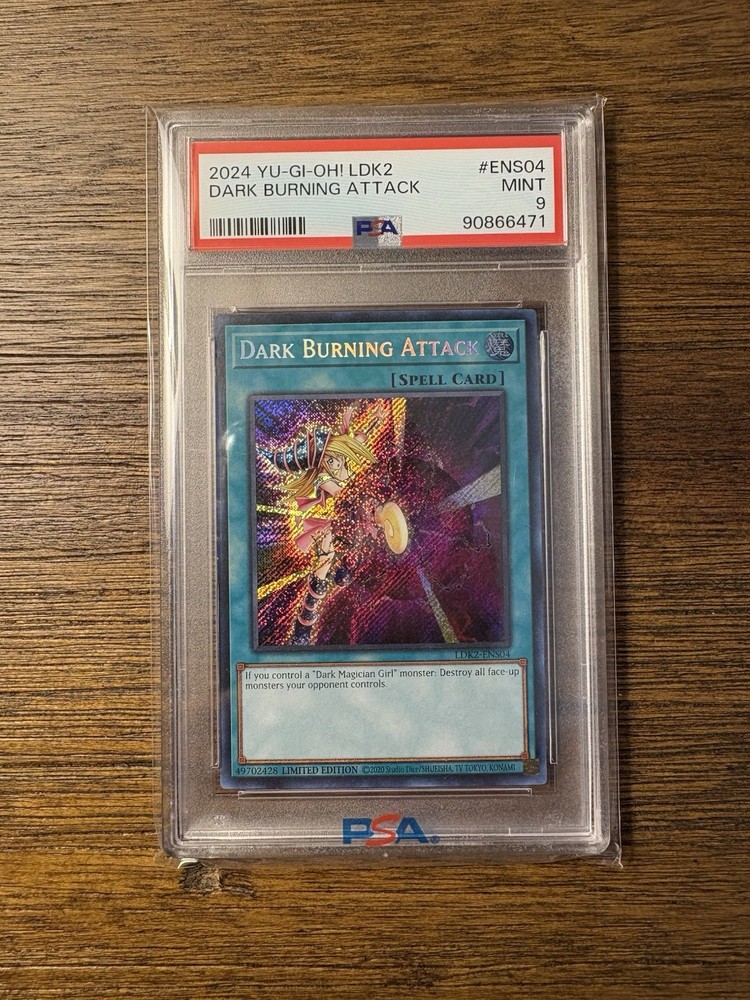 The PSA 9 Dark Burning Attack card from the Legendary Decks II set features the Dark Magician Girl design, making it a highly sought-after collectible for Yu-Gi-Oh! TCG enthusiasts. As a Secret Rare English language card with a Spell attribute, it is a valuable addition to any card collection. With its limited edition status and association with the renowned manufacturer Konami, this Spell-Normal card is a must-have for collectors and players alike.
