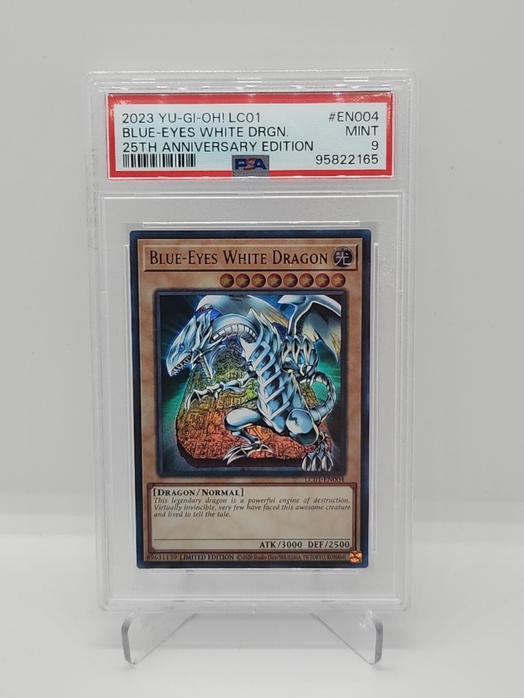 This PSA 9 NM-Mint Blue-Eyes White Dragon LC01-EN004 from the Legendary Collection is a must-have for any Yu-Gi-Oh! TCG fan. With its stunning holo finish and limited edition status, this card is sure to be a prized possession in any collection. Featuring the iconic character Seto Kaiba, this standard-sized card is made of high-quality card stock and is suitable for ages 4 and up. The card is in English and is part of the Normal card type. Manufactured by Konami, this card is perfect for collectors and players alike. Only 291 as of 10/4/2024. Get yours today!