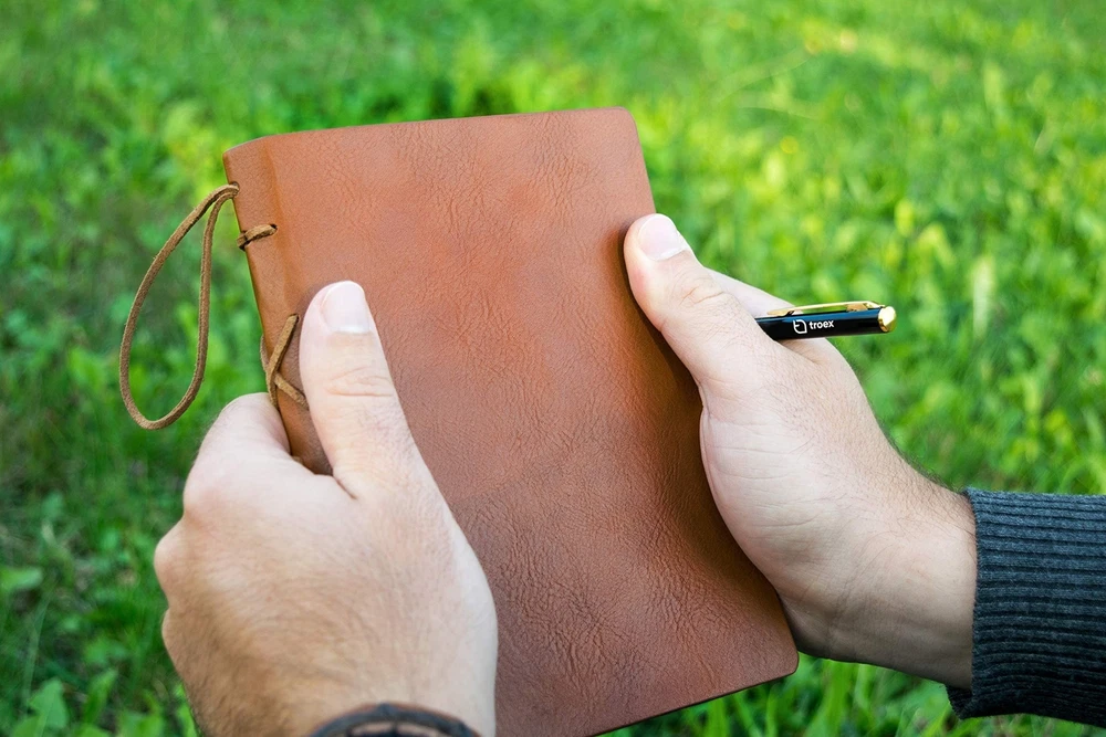 PU Leather Journal Writing Notebook with Ballpoint Pen, String Closure & Unlined Pages- Light Brown Leather Bound Journal for Men & Women- Vintage Style Handmade Leather Notebook Journal ✓ Free 60 Day Returns ✓ Free Express Shipping Description: Features: WHILE A LOT OF OTHER LEATHER JOURNALS on the market are made of real animal leather, they smell bad, and are made of poor quality material or they are difficult to close, our light brown journal is an ecofriendly PU leather notebook which smells good and is equipped with a resistant leather string which can be used in many ways, depending on your needs; since our light brown bound diary is truly user friendly, it will become an inseparable companion in your daily life NO MORE STRESS AND FRUSTRATION because of lack of organization; no more fear to express your creativity; our journal will help you to feel calmer and less stressed; organize your thoughts, express your feelings and write down your ideas; its blank unlined pages are ideal for writing and drawing with no limits; use it as a diary, sketchbook or planner; if you like to travel or you are often away from home, you can make the most of its compact size of 7 x 5 inches and take it always with you IDEAL FOR DREAMERS, WRITERS, ARTISTS and TRAVELERS who want to express their creativity any way they want; an excellent PU leather journal is also a great tool for business men and women who want to be more efficient when writing down their plans and goals and increase their chances of achieving them; INCLUDED IN THE PACKAGE IS A WONDERFUL BLUE INK BALLPOINT PEN which you can use to fill the unlined paper of the notebook in your own creative way; paper is NOT REFILLABLE NO HASSLE REFUND: if you are not satisfied for any reason, we will give you a full refund; it is backed by our manufacturer's 60 DAY MONEY BACK GUARANTEE; no questions asked; IT INCLUDES A PERSONALIZED GIFT which will help you to feel better and happier when using our leather journal WE BELIEVE THAT EVERYONE CAN MAKE THE DIFFERENCE and inspire people all around; we want to help each and every one of you to unleash your hidden potential; our leather notebook will help you set your goals or use your creativity to discover who you are and what your dreams are; we are people who use our own products every day to achieve our goals and inspire others; be creative and think big; Remember: Your inner world is where the magic happens Product Details: Brand: TROEX Color: Light Brown Theme: Book Sheet Size: 5 x 7 inches Cover Material: Faux Leather Style: Vintage Ruling Type: Plain Special Feature: Refillable Number of Items: 1 Specific Uses For Product: Diary, Sketchbook, Planner Manufacturer: Troex Brand: TROEX Item Weight: 11.7 ounces Product Dimensions: 7 x 5 x 1 inches Item model number: EBLJ-00001 Is Discontinued By Manufacturer: No Color: Light Brown Cover Material: Faux Leather Material Type: paper, pu leather Number of Items: 1 Ruling: Plain Sheet Size: 5 x 7 inches Point Type: Fine Ink Color: Brown Manufacturer Part Number: EBLJ-00001 Date First Available: August 8, 2017