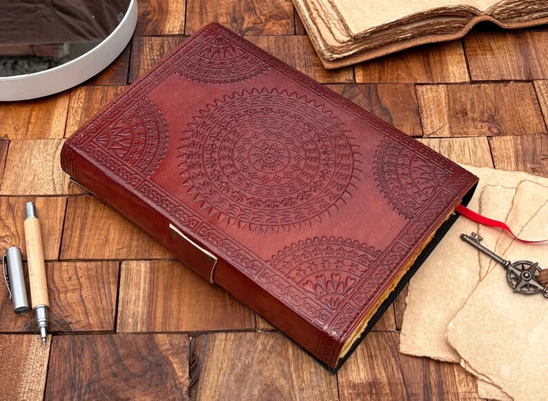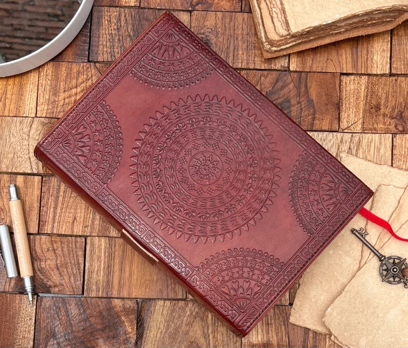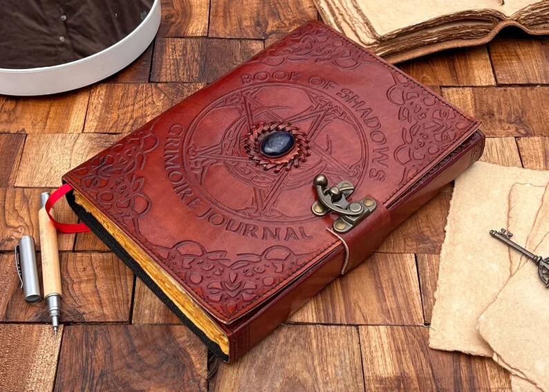 ● PENTAGRAM JOURNAL • Size - 10x7 , Inches • Color - black , brown , charcoal • C-Lock Brad's • Genuine Leather • Vintage Deckle Edge Old Paper • 100 Sheet (200 Pages Both Side) ● Brown color handmade leather journal with beautifully Pentagram embossed done on the front cover of the journal and back side of the journal is different embossed done on the journal. Also triple moon Goddess Symbol embossed on front. ● EXQUISITE & UNIQUE SEMI PRECIOUS STONE:The vintage journal is embossed with a special stone called “ lapis lazuli ” which helps to reveal inner truth within yourself and encourage self-awareness and self expression. We have taken extra to make sure that the emboss is perfect in every piece. ● It is a truly unique and wonderful gift for a friend, the men, women, and wiccans in your life! or to treat yourself to as a special keepsake ● VINTAGE LOCK AND STURDY BINDING - The vintage lock will keep all your valuable writing locked inside.Sturdy hand stitched binding to make sure that no paper comes out loose from your vintage notebook. ● our journals are influenced by symbolism that is derived from the Wicca/Pagan community, creating a personalized space where your inner creative genius can flourish. ● Antique Paper - Vintage Journal is made of unique vintage paper which looks like it was pulled from history. You will love the old looking handmade cotton paper (200 pages) which is unique to our vintage journals. ● The paper is made from sustainable cotton and jute canvas. The paper is acid-free and PH neutral therefore is a timeless piece of art. ● Use Any Kind Of Pen - Sketch, Doodle, Write on your journal notebook with a Calligraphy Pen Fountain Pen, Brush Pen, Ball Pen, Acrylic Colours, Watercolor and many more. Note: Due to being handmade, the color of the journal may be slightly different from the picture shown in listing. PAYONEER I accept Payoneer. COUNTRY: Shipping Worldwide from INDIA TYPE: Standard Int'l Flat Rate Shipping OTHER: I usually ship within 24 hours after receipt of payment. The delivery time from Ukraine: 10-25 days. Item will be qualitatively packed. Always leave a positive feedback to good ebayers. 30-Day return policy : I guarantee you complete satisfaction with all my high quality products. If you receive an item you did not order or if an item you ordered is received damaged or defective, I will refund you the price you paid for it or replace it with identical one.