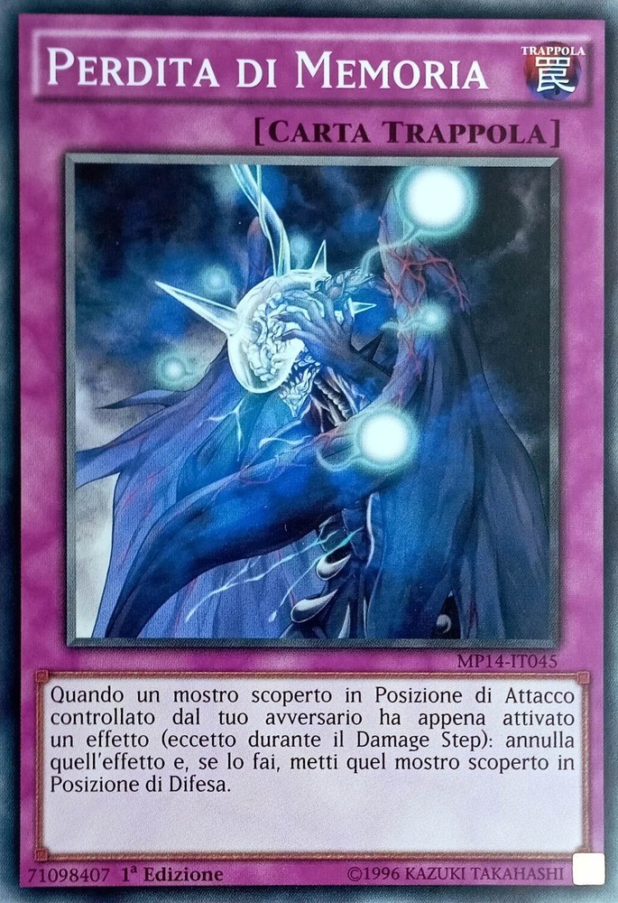 Perdita di Memoria - Comune - 2014 Mega-Tin Mega-Pack - MP14-IT045 - Ita Nuovo Perdita di Memoria - Comune - 2014 Mega-Tin Mega-Pack - MP14-IT045 - Ita Nuovo Quando un mostro scoperto in Posizione di Attacco controllato dal tuo avversario ha appena attivato un effetto (eccetto durante il Damage Step): annulla quell’effetto e, se lo fai, metti quel mostro scoperto in Posizione di Difesa. Shipping Shipping cost: Italy Posta 1 -> 2,95 Corriere Espresso -> 5,99 Outside Italy Priority - 8,00 Delivery time: La Spedizione Viene Effettuata entro i 5 giorni successivi al pagamento dell'ordine. Payment Per qualsiasi info contattateci Service Per qualsiasi info contattateci