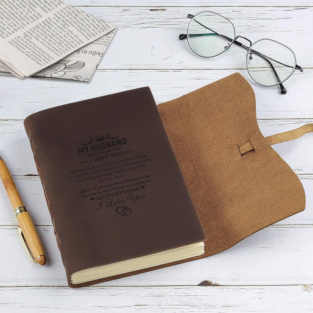 About this item ❶ BEAUTIFUL CRAFTSMANSHIP + RUSTIC CHARM GIFTS: Leather Journal/Notebook is made from soft & supple brown water buffalo leather with a real leather scent. Rub your markings and they will fade away. Handmade from 100% genuine leather, each journal varies in appearance and shadows, producing a unique item—no two are ever the same—a special souvenir of thoughts and ideas. ❷ ADVANCED LASER ENGRAVING TECHNOLOGY + WARM LOVE REMINDER: Personalized antique writing journal cover is engraved with stunning and meaningful graphics and text designs. The leather notebook is a truly exquisite, unique, commemorative, and practical present, perfect for anniversaries, birthdays, Thanksgiving, Valentine's Day, Christmas, and other special occasions. ❸ ECO-FRIENDLY DAWLIN PAPER + DETAILED DESIGN: 140 sheets / 280 pages of unlined blank cream-colored paper, handcrafted with recycled cotton which is acid-free, tree-free, and environmentally friendly! No bleeding—any pen can be used on this thick 100g paper. A leather wrap-around strap effectively keeps the journal closed and doubles as a handy bookmark. Hand-stitched binding with Crazy Horse leather firmly secures the pages while adding a vintage charm to this timeless journal. ❹ PERFECT SIZE + MANY USES: 7 x 1.4 x 5.3 inches, easy to handwrite, draw, or sketch, and compact for carrying in your bag. Ideal for use as an artist's sketchbook, diary, travel journal, watercolor book, youth/teen journal, poetry collection, journalist's notebook, guestbook, food planner, scrapbook, or Bible diary. Size: 7 x 1.4 x 5.3 inches