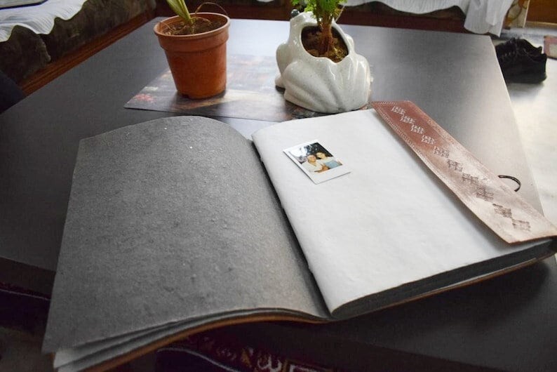 The handmade album scrapbook with genuine leather, the best gift for you and your loved ones, an ideal gift for Valentine's Day, Mother's Day, Father's Day, Christmas, Wedding, Birthday, Graduation or Anniversary, which will become a very wonderful memory. The Album have 50sheets / 100 pages(both front and back), I use Acid free paper of the density of 300 g/m2 make it .Three kinds of paper. ●Craft paper/White paper/Black paper. Size: 14 inches x 8 inches