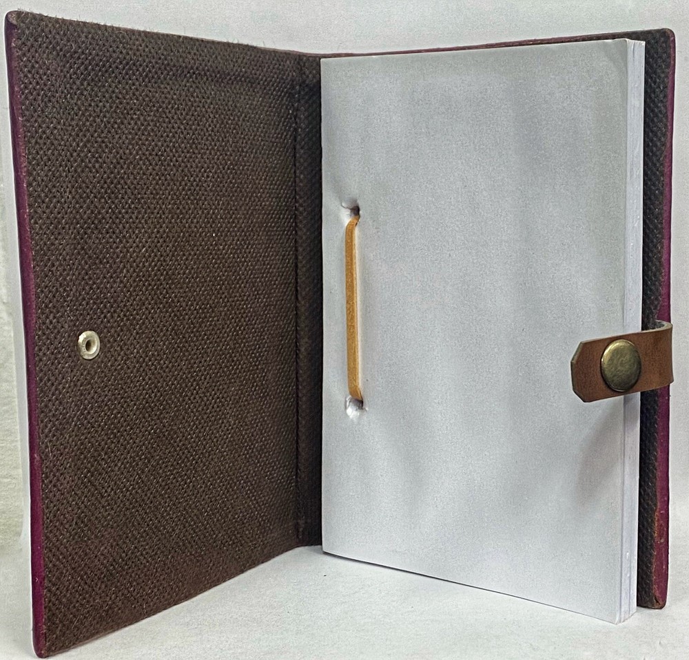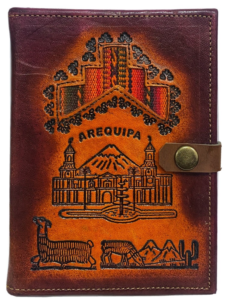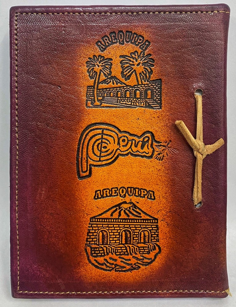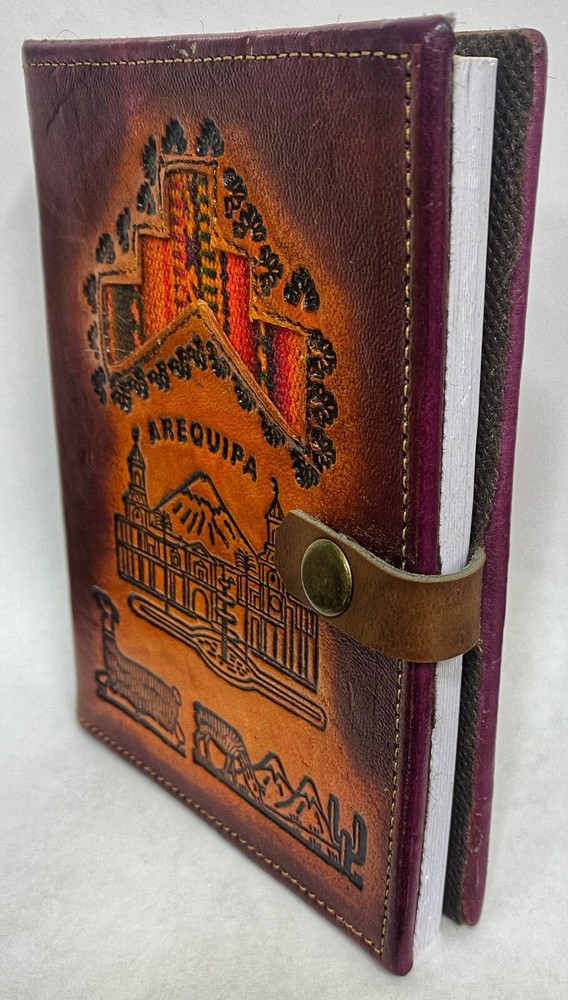 Peruvian Arequipa Leather Bound Blank Notebook. Unused with only some light handling marks. Approximately 4-1/2” by 6”. Shipped with USPS First Class Mail.