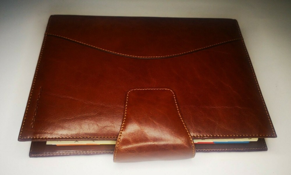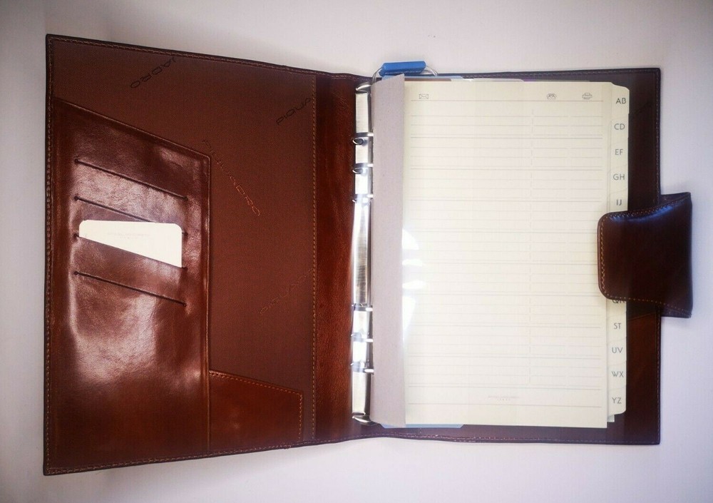 Piquadro Genuine Leather Agenda / Filofax / Organizer / Planner Large size , Brown color, made in Italy Very qualitative looking cover. Never used. New. Organizer, Filofax, inside 6 ring- bound planner, you can add your own pages Leather cover, metal magnetic clip to close it Very good quality product 4x Credit cards or business card spots 1x side pockets for papers, left side 1x leather loop for holding pen Included papers (21.5cm * 14cm) : Telephone book Contacts Projects Goals Expenses Notes Size : 24.5cm * 18cm * 4.5cm Weight : 753gr Material : leather cover & leather and fabric inside Color : Brown (colors in picture could be different than in real life) Keep most reached items in organizer, business and credit cards, handy and neat. The three values inspiring the brand - design, functionality and technological innovation - merge in the Piquadro products with the taste of Italian craftsmanship, the quality of fine leathers and attention to detail. In each collection Piquadro offers a wide range of bags, suitcases and small accessories in which the originality and elegance of the Italian style are combined with a studied practicality and reliability at the service of work, travel and the intense pace of contemporary life. Shipping Shipping will be made from Latvia. 1-2 day time. Shipping Free Worldwide . We are not responsible for any custom duty, additional taxes or fees levied by other countries. Europe - 15 business days Other world - 21 business days Return 100% Satisfaction Guarantee, If you are not satisfied with the product you purchased for any reason, please contact us for a return instruction within 7 days for a refund. Refund can be made for item price only. Return shipping cost will be paid by buyer. Please be aware that item may arrived when you aren't home and you may ignore the post office note. Normally, item shall be kept at your local post office for a while to pick up before return to us. Sometime please do not expect your package to be left at your door. The USPS Postal system considers this a risk and will hold your package for you at the post office for pick up. You will be notified by them that your package is there to be picked up. Feedback If you are considering giving a neutral or negative Feedback or a low DSR, do write to me and give me an opportunity to address your concerns first. We believe that all buyers on ebay are honest and caring people and all will get positive feedback from us. Important Color may be vary due to camera and different monitor setting. We are not responsible for any custom duty, additional taxes or fees levied by other countries. Buyer has to pay custom charge or additional taxes. C ontact It will be are pleasure to answer any questions/queries you might have. Please contact me by ebay message ONLY