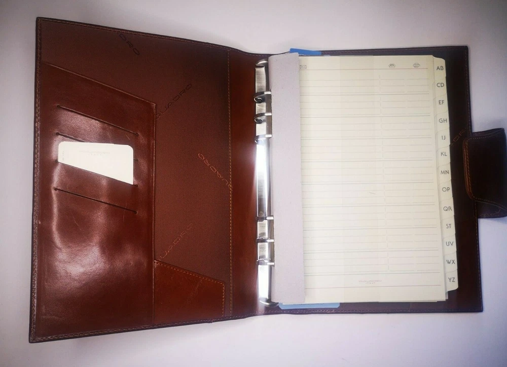 Piquadro Genuine Leather Agenda / Filofax / Organizer / Planner Large size , Brown color, made in Italy Very qualitative looking cover. Never used. New. Organizer, Filofax, inside 6 ring- bound planner, you can add your own pages Leather cover, metal magnetic clip to close it Very good quality product 4x Credit cards or business card spots 1x side pockets for papers, left side 1x leather loop for holding pen Included papers (21.5cm * 14cm) : Telephone book Contacts Projects Goals Expenses Notes Size : 24.5cm * 18cm * 4.5cm Weight : 753gr Material : leather cover & leather and fabric inside Color : Brown (colors in picture could be different than in real life) Keep most reached items in organizer, business and credit cards, handy and neat. The three values inspiring the brand - design, functionality and technological innovation - merge in the Piquadro products with the taste of Italian craftsmanship, the quality of fine leathers and attention to detail. In each collection Piquadro offers a wide range of bags, suitcases and small accessories in which the originality and elegance of the Italian style are combined with a studied practicality and reliability at the service of work, travel and the intense pace of contemporary life. Shipping Shipping will be made from Latvia. 1-2 day time. Shipping Free Worldwide . We are not responsible for any custom duty, additional taxes or fees levied by other countries. Europe - 15 business days Other world - 21 business days Return 100% Satisfaction Guarantee, If you are not satisfied with the product you purchased for any reason, please contact us for a return instruction within 7 days for a refund. Refund can be made for item price only. Return shipping cost will be paid by buyer. Please be aware that item may arrived when you aren't home and you may ignore the post office note. Normally, item shall be kept at your local post office for a while to pick up before return to us. Sometime please do not expect your package to be left at your door. The USPS Postal system considers this a risk and will hold your package for you at the post office for pick up. You will be notified by them that your package is there to be picked up. Feedback If you are considering giving a neutral or negative Feedback or a low DSR, do write to me and give me an opportunity to address your concerns first. We believe that all buyers on ebay are honest and caring people and all will get positive feedback from us. Important Color may be vary due to camera and different monitor setting. We are not responsible for any custom duty, additional taxes or fees levied by other countries. Buyer has to pay custom charge or additional taxes. C ontact It will be are pleasure to answer any questions/queries you might have. Please contact me by ebay message ONLY