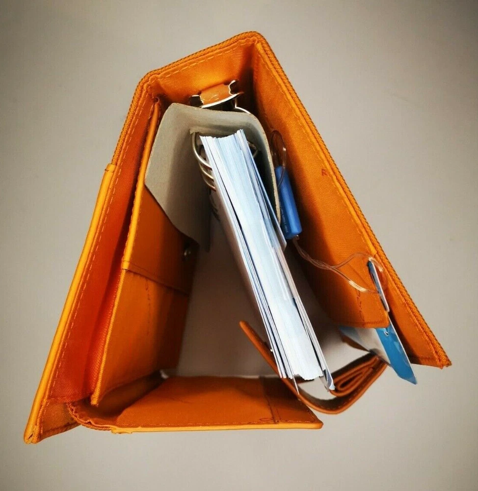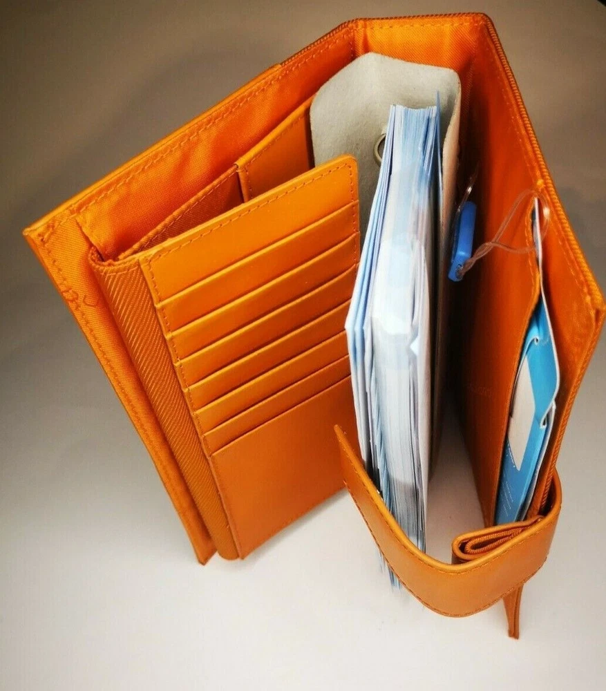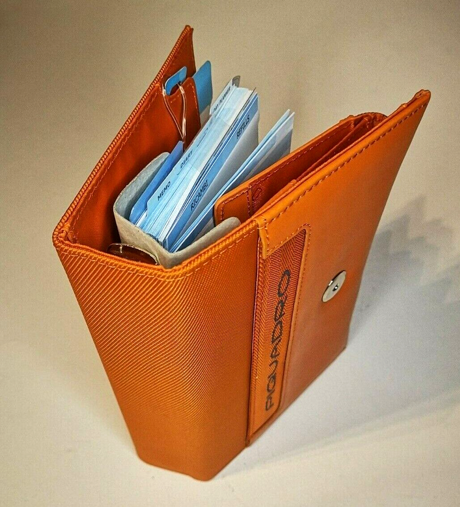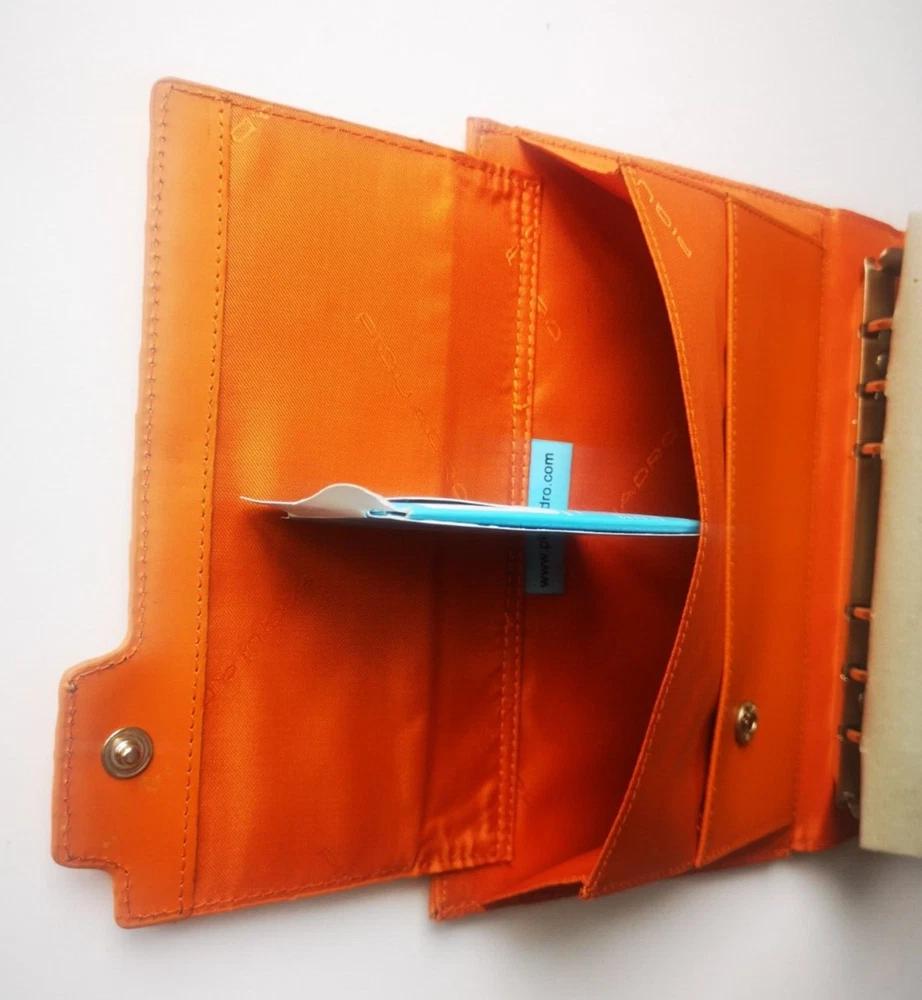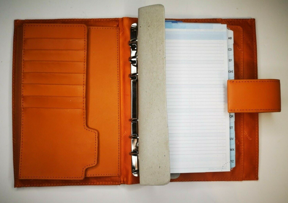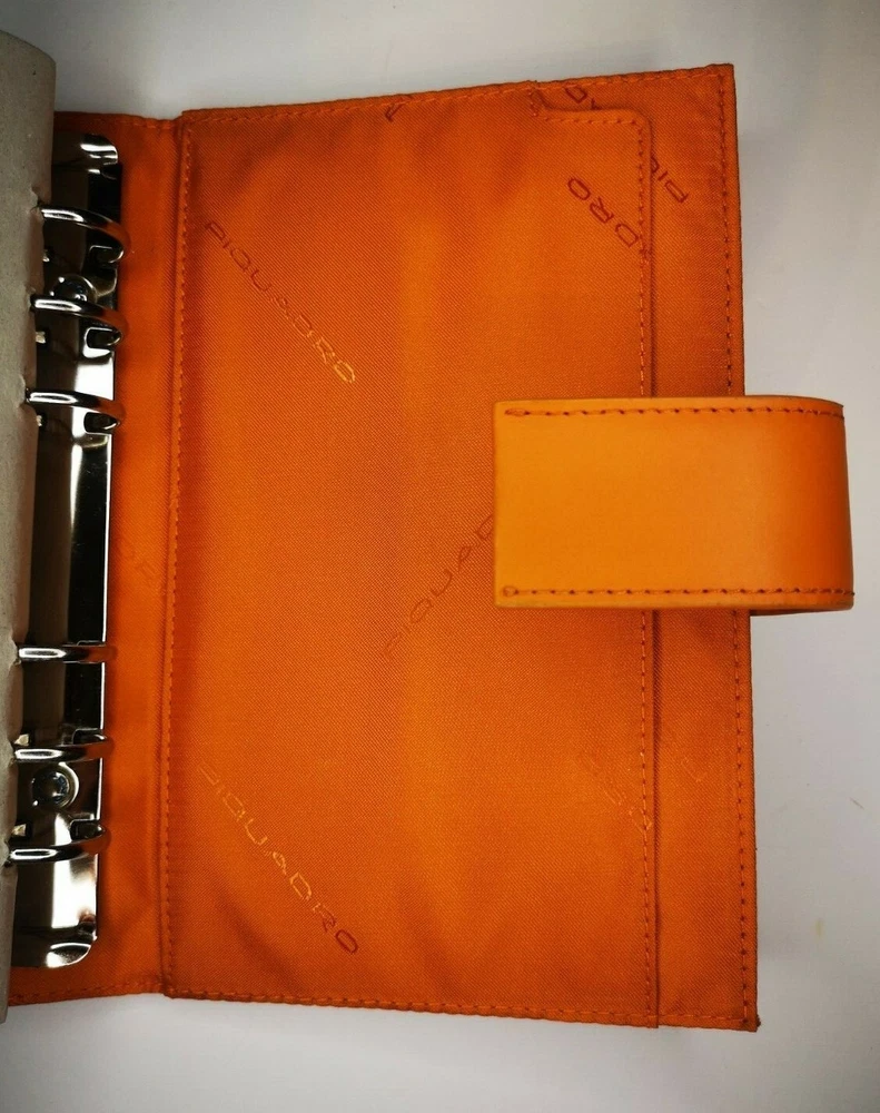 Piquadro Leather & Synthetic Agenda / Filofax / Organizer / Planner Medium size, Orange color, made in Italy Organizer, Filofax, inside 6 ring- bound planner, you can add your own pages Synthetic fibers and leather cover, metal magnet clip to close it 7x Credit cards or business card spots pocket with metal clip, inside 2 pockets for papers, one small, one medium right back side pocket for papers leather loop for pen holding Included papers (17cm * 9.5cm) : Telephone book Ideas Appointments Contacts Goals Notes Square notes Size: 20.5cm * 13.5cm * 4.5cm Weight: 460gr Material: leather and synthetic Color: Orange (colors in picture could be different than in real life) Keep most reached item in organizer, business and credit cards, handy and neat. The three values inspiring the brand - design, functionality and technological innovation - merge in the Piquadro products with the taste of Italian craftsmanship, the quality of fine leathers and attention to detail. In each collection Piquadro offers a wide range of bags, suitcases and small accessories in which the originality and elegance of the Italian style are combined with a studied practicality and reliability at the service of work, travel and the intense pace of contemporary life. Shipping Shipping will be made from Latvia. 1-2 day time. Shipping Free Worldwide . We are not responsible for any custom duty, additional taxes or fees levied by other countries. Europe - 15 business days Other world - 21 business days Return 100% Satisfaction Guarantee, If you are not satisfied with the product you purchased for any reason, please contact us for a return instruction within 7 days for a refund. Refund can be made for item price only. Return shipping cost will be paid by buyer. Please be aware that item may arrived when you aren't home and you may ignore the post office note. Normally, item shall be kept at your local post office for a while to pick up before return to us. Sometime please do not expect your package to be left at your door. The USPS Postal system considers this a risk and will hold your package for you at the post office for pick up. You will be notified by them that your package is there to be picked up. Feedback If you are considering giving a neutral or negative Feedback or a low DSR, do write to me and give me an opportunity to address your concerns first. We believe that all buyers on ebay are honest and caring people and all will get positive feedback from us. Important Color may be vary due to camera and different monitor setting. We are not responsible for any custom duty, additional taxes or fees levied by other countries. Buyer has to pay custom charge or additional taxes. C ontact It will be are pleasure to answer any questions/queries you might have. Please contact me by ebay message ONLY