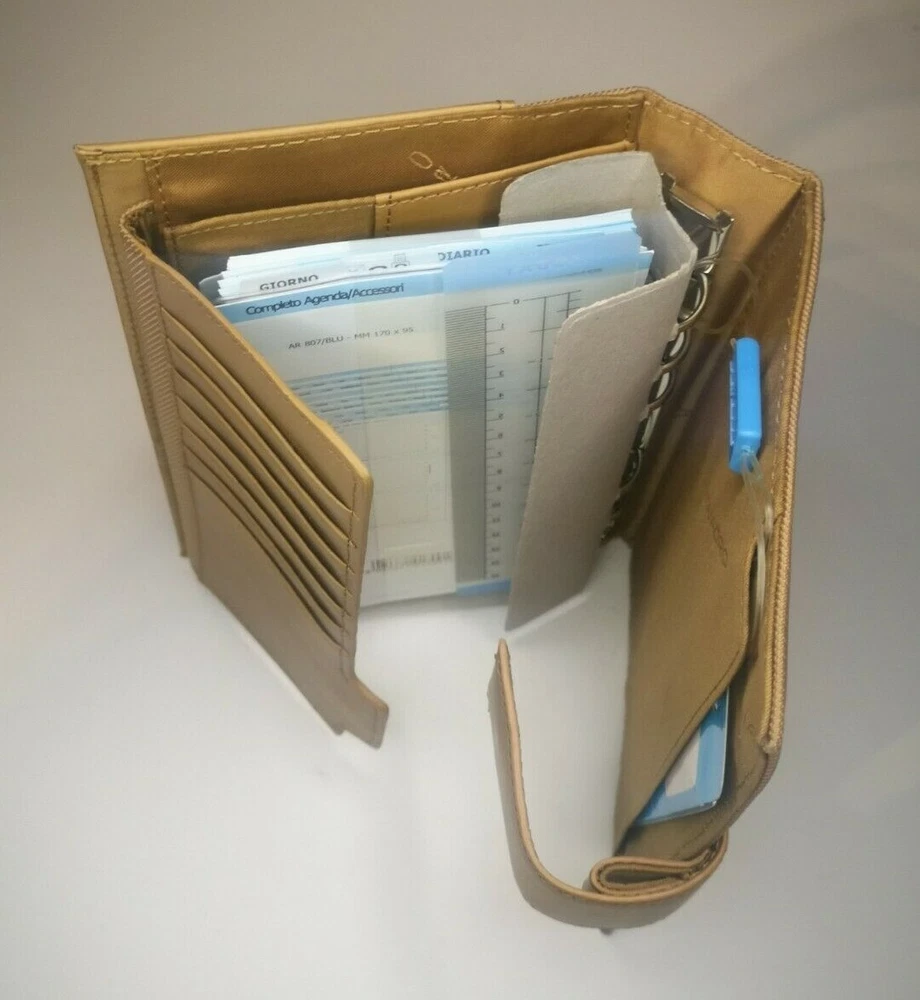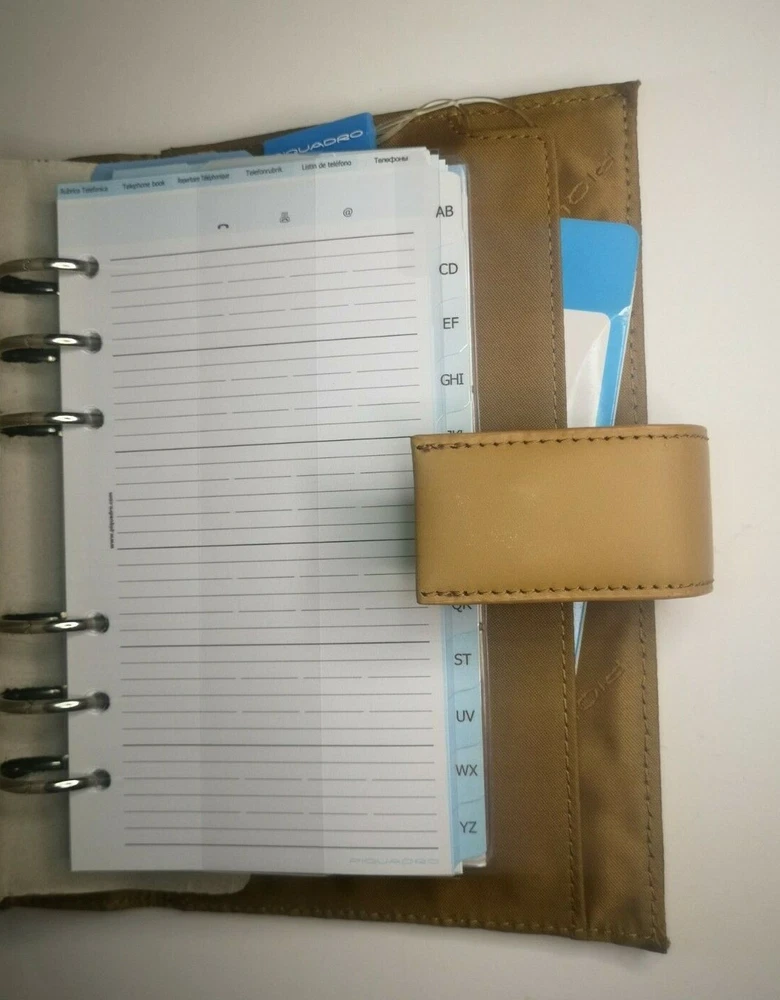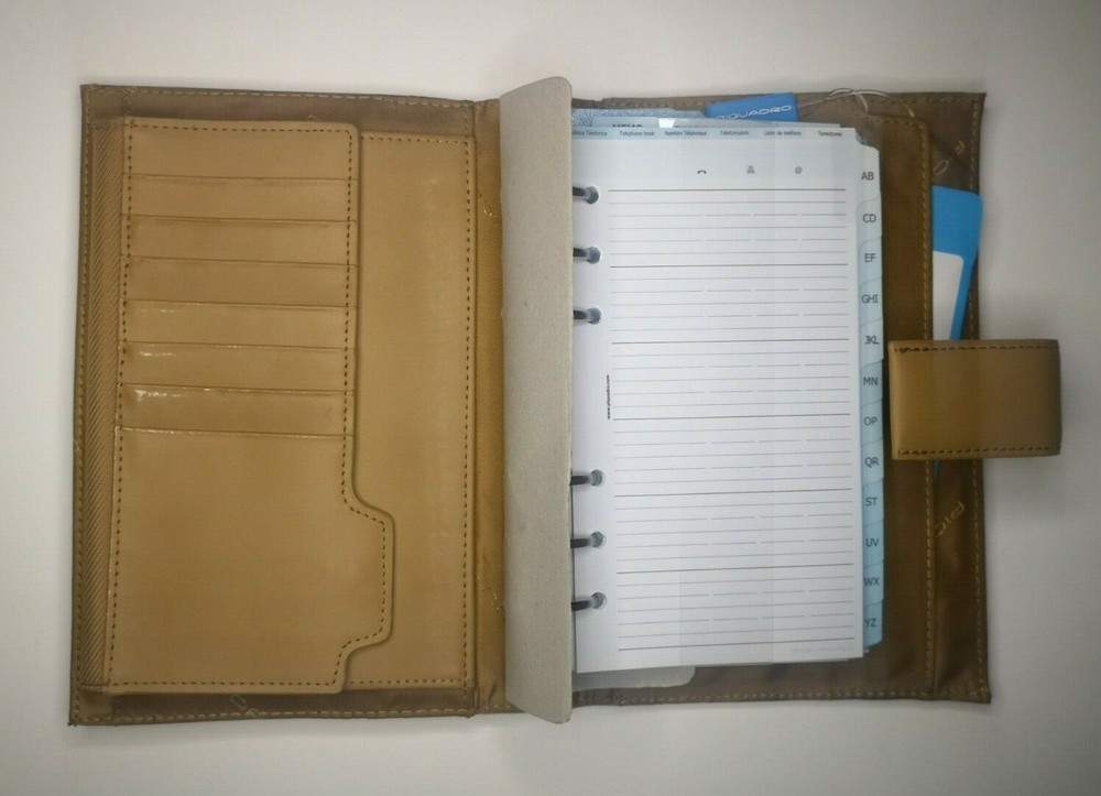 Piquadro Leather Synthetic Agenda / Filofax / Organizer / Planner Medium size, Light color, made in Italy Organizer, Filofax, inside 6 ring- bound planner, you can add your own pages Synthetic fibers and leather cover, metal magnet clip to close it 7x Credit cards or business card spots pocket with metal clip, inside 2 pockets for papers, one small, one medium right side back pocket for papers loop for pen holding Included papers (17cm * 9.5cm) : Telephone book Ideas Appointments Contacts Goals Notes Square notes Size: 20.5cm * 13cm * 4.5cm (A5) Weight: 460gr Material: leather and synthetic Color: Light / toffee (colors in picture could be different than in real life) Keep most reached item in organizer, business and credit cards, handy and neat. The three values inspiring the brand - design, functionality and technological innovation - merge in the Piquadro products with the taste of Italian craftsmanship, the quality of fine leathers and attention to detail. In each collection Piquadro offers a wide range of bags, suitcases and small accessories in which the originality and elegance of the Italian style are combined with a studied practicality and reliability at the service of work, travel and the intense pace of contemporary life. Shipping Shipping will be made from Latvia. 1-2 day time. Shipping Free Worldwide . We are not responsible for any custom duty, additional taxes or fees levied by other countries. Europe - 15 business days Other world - 21 business days Return 100% Satisfaction Guarantee, If you are not satisfied with the product you purchased for any reason, please contact us for a return instruction within 7 days for a refund. Refund can be made for item price only. Return shipping cost will be paid by buyer. Please be aware that item may arrived when you aren't home and you may ignore the post office note. Normally, item shall be kept at your local post office for a while to pick up before return to us. Sometime please do not expect your package to be left at your door. The USPS Postal system considers this a risk and will hold your package for you at the post office for pick up. You will be notified by them that your package is there to be picked up. Feedback If you are considering giving a neutral or negative Feedback or a low DSR, do write to me and give me an opportunity to address your concerns first. We believe that all buyers on ebay are honest and caring people and all will get positive feedback from us. Important Color may be vary due to camera and different monitor setting. We are not responsible for any custom duty, additional taxes or fees levied by other countries. Buyer has to pay custom charge or additional taxes. C ontact It will be are pleasure to answer any questions/queries you might have. Please contact me by ebay message ONLY