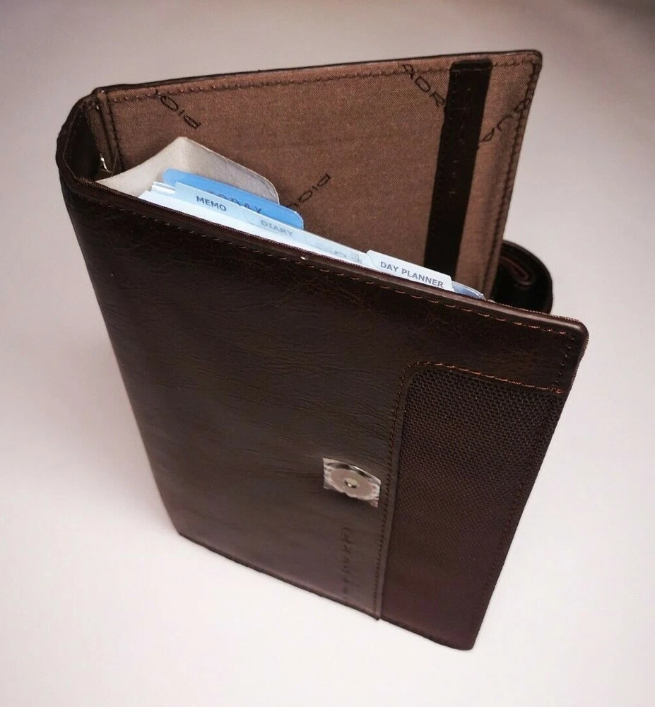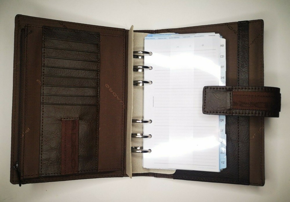 Piquadro Soft Leather & Synthetic Agenda / Filofax / Organizer / Planner Medium size, Brown color , made in Italy New, never used. Organizer, Filofax, inside 6 ring- bound planner No calendar papers included (you can add your own) Soft leather cover, metal magnet clip to close it Looking for quality you have found it 8x Credit cards or business card spots left side compartment with zipper both sides compartments for papers leather loop for pen holding Included papers (17cm * 9.5cm) : Telephone book Diary Day planner Notes Size: 20.5cm * 14.5cm * 4cm Weight: 436gr Material: soft leather & fabric inside Color: Brown (colors in picture could be different than in real life) Keep most reached item in organizer, business and credit cards, handy and neat. The three values inspiring the brand - design, functionality and technological innovation - merge in the Piquadro products with the taste of Italian craftsmanship, the quality of fine leathers and attention to detail. In each collection Piquadro offers a wide range of bags, suitcases and small accessories in which the originality and elegance of the Italian style are combined with a studied practicality and reliability at the service of work, travel and the intense pace of contemporary life. Shipping Shipping will be made from Latvia. 1-2 day time. Shipping Free Worldwide . We are not responsible for any custom duty, additional taxes or fees levied by other countries. Europe - 15 business days Other world - 21 business days Return 100% Satisfaction Guarantee, If you are not satisfied with the product you purchased for any reason, please contact us for a return instruction within 7 days for a refund. Refund can be made for item price only. Return shipping cost will be paid by buyer. Please be aware that item may arrived when you aren't home and you may ignore the post office note. Normally, item shall be kept at your local post office for a while to pick up before return to us. Sometime please do not expect your package to be left at your door. The USPS Postal system considers this a risk and will hold your package for you at the post office for pick up. You will be notified by them that your package is there to be picked up. Feedback If you are considering giving a neutral or negative Feedback or a low DSR, do write to me and give me an opportunity to address your concerns first. We believe that all buyers on ebay are honest and caring people and all will get positive feedback from us. Important Color may be vary due to camera and different monitor setting. We are not responsible for any custom duty, additional taxes or fees levied by other countries. Buyer has to pay custom charge or additional taxes. C ontact It will be are pleasure to answer any questions/queries you might have. Please contact me by ebay message ONLY