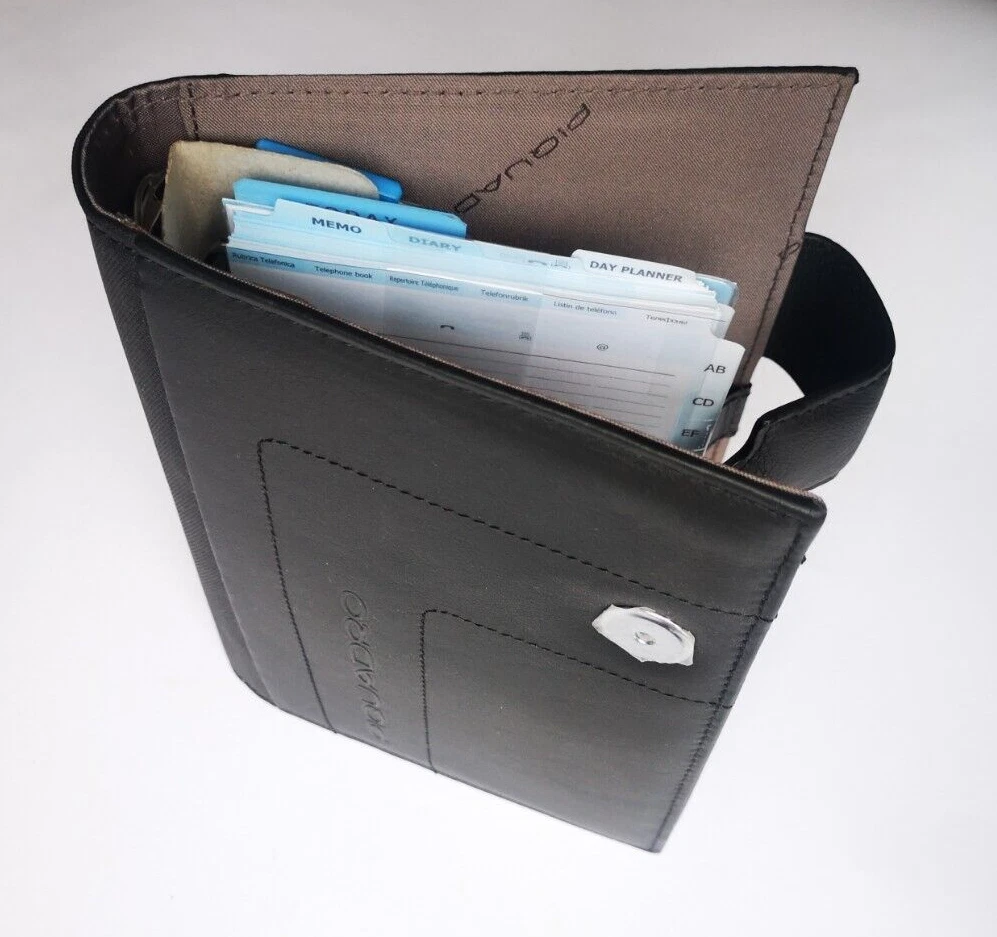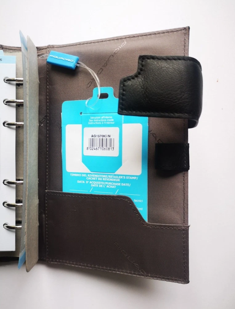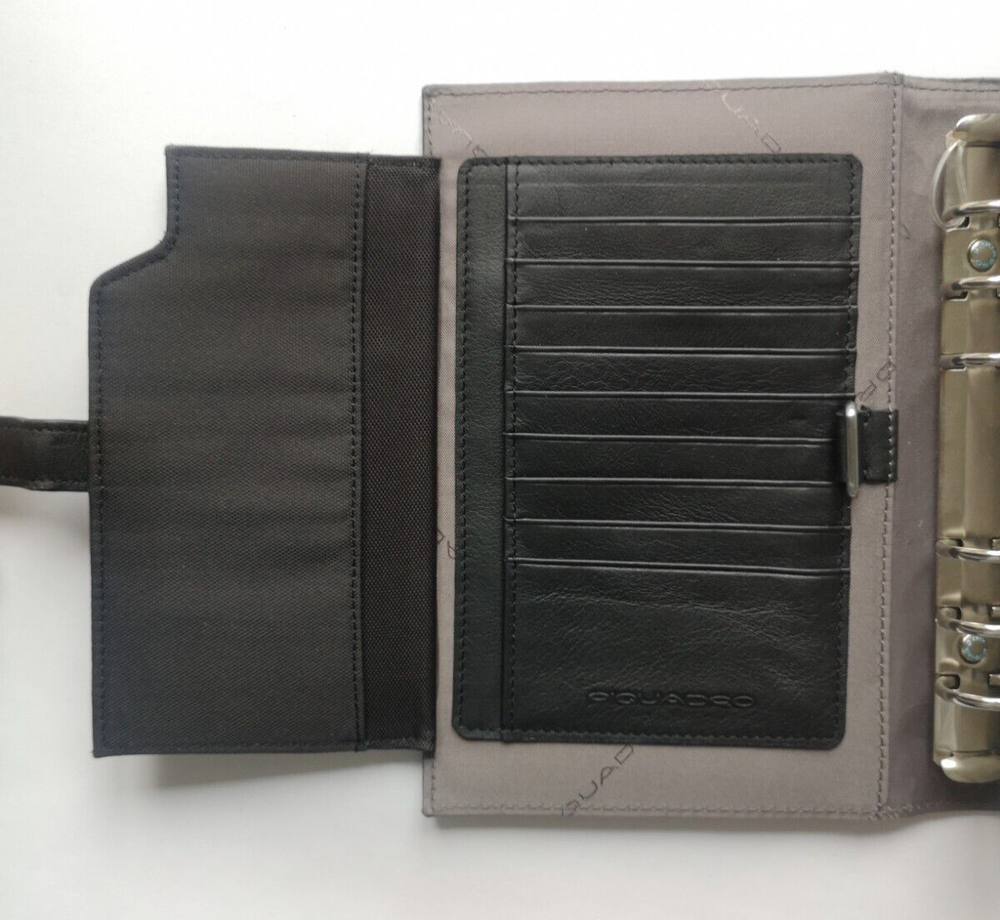 Piquadro Soft Leather and Synthetic Agenda / Filofax / Organizer / Planner Medium size, Black and grey color inside, made in Italy Organizer, Filofax, inside 6 ring- bound planner, you can add your own pages Soft leather/synthetic cover, metal magnet clip to close it Looking for quality you have found it 9x Credit card or business card spots leather metal strap with metal clip leather loop for pen holding 2x both side pockets for papers Included papers (17cm * 9.5cm) : Telephone book Notes Square notes Contacts Goals Diary Size: 20.5cm * 13.5cm * 5cm Weight: 425gr Material: soft leather & synthetic inside Color: Black, inside grey color (colors in picture could be different than in real life) Keep most reached item in organizer, business and credit cards, handy and neat. The three values inspiring the brand - design, functionality and technological innovation - merge in the Piquadro products with the taste of Italian craftsmanship, the quality of fine leathers and attention to detail. In each collection Piquadro offers a wide range of bags, suitcases and small accessories in which the originality and elegance of the Italian style are combined with a studied practicality and reliability at the service of work, travel and the intense pace of contemporary life. Shipping Shipping will be made from Latvia. 1-2 day time. Shipping Free Worldwide . We are not responsible for any custom duty, additional taxes or fees levied by other countries. Europe - 15 business days Other world - 21 business days Return 100% Satisfaction Guarantee, If you are not satisfied with the product you purchased for any reason, please contact us for a return instruction within 7 days for a refund. Refund can be made for item price only. Return shipping cost will be paid by buyer. Please be aware that item may arrived when you aren't home and you may ignore the post office note. Normally, item shall be kept at your local post office for a while to pick up before return to us. Sometime please do not expect your package to be left at your door. The USPS Postal system considers this a risk and will hold your package for you at the post office for pick up. You will be notified by them that your package is there to be picked up. Feedback If you are considering giving a neutral or negative Feedback or a low DSR, do write to me and give me an opportunity to address your concerns first. We believe that all buyers on ebay are honest and caring people and all will get positive feedback from us. Important Color may be vary due to camera and different monitor setting. We are not responsible for any custom duty, additional taxes or fees levied by other countries. Buyer has to pay custom charge or additional taxes. C ontact It will be are pleasure to answer any questions/queries you might have. Please contact me by ebay message ONLY