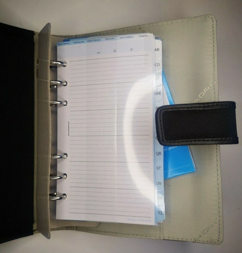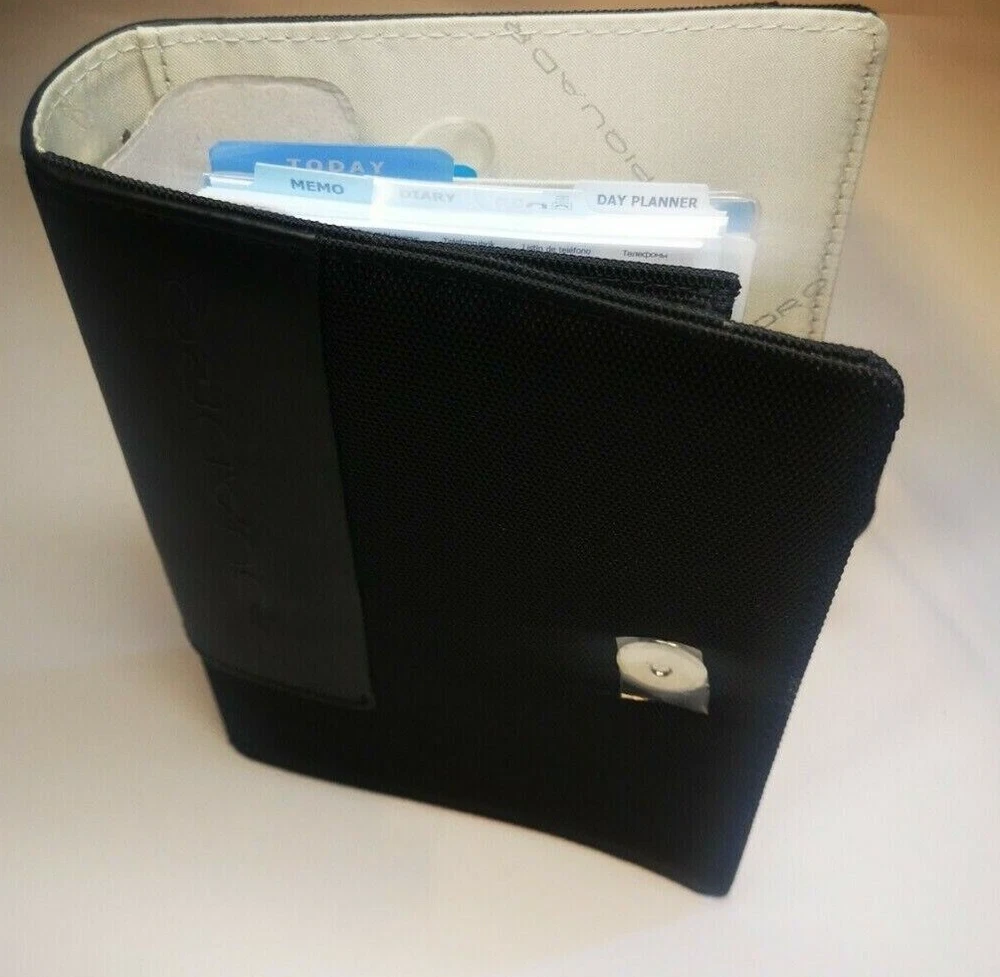Piquadro Leather $ Synthetic material Agenda / Filofax / Organizer / Planner Medium size, Black color, black&white inside, made in Italy Organizer, Filofax, inside 6 ring- bound planner, you can add your own pages Synthetic fibers and leather cover, metal magnet clip to close it 5x Credit cards or business card spots 2x both side pockets for papers loop for pen holding Included papers (17cm * 9.5cm) : Telephone book Contacts Projects / Notes Goals Square notes Size: 20.5cm * 15cm * 4.5cm Weight: 425gr Material: Synthetic fiber and leather Color: Black, black/white inside (colors in picture could be different than in real life) Keep most reached item in organizer, business and credit cards, handy and neat. The three values inspiring the brand - design, functionality and technological innovation - merge in the Piquadro products with the taste of Italian craftsmanship, the quality of fine leathers and attention to detail. In each collection Piquadro offers a wide range of bags, suitcases and small accessories in which the originality and elegance of the Italian style are combined with a studied practicality and reliability at the service of work, travel and the intense pace of contemporary life. Shipping Shipping will be made from Latvia. 1-2 day time. Shipping Free Worldwide . We are not responsible for any custom duty, additional taxes or fees levied by other countries. Europe - 15 business days Other world - 21 business days Return 100% Satisfaction Guarantee, If you are not satisfied with the product you purchased for any reason, please contact us for a return instruction within 7 days for a refund. Refund can be made for item price only. Return shipping cost will be paid by buyer. Please be aware that item may arrived when you aren't home and you may ignore the post office note. Normally, item shall be kept at your local post office for a while to pick up before return to us. Sometime please do not expect your package to be left at your door. The USPS Postal system considers this a risk and will hold your package for you at the post office for pick up. You will be notified by them that your package is there to be picked up. Feedback If you are considering giving a neutral or negative Feedback or a low DSR, do write to me and give me an opportunity to address your concerns first. We believe that all buyers on ebay are honest and caring people and all will get positive feedback from us. Important Color may be vary due to camera and different monitor setting. We are not responsible for any custom duty, additional taxes or fees levied by other countries. Buyer has to pay custom charge or additional taxes. C ontact It will be are pleasure to answer any questions/queries you might have. Please contact me by ebay message ONLY