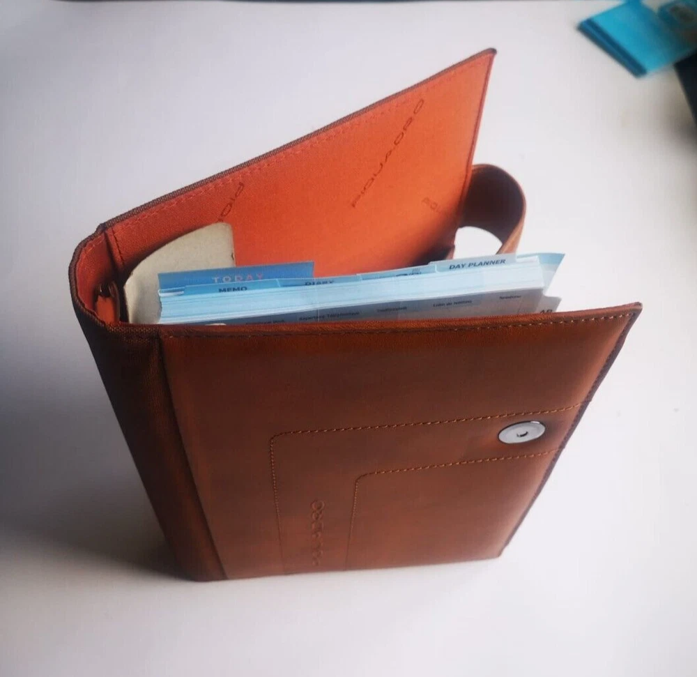 Piquadro Soft Leather and Synthetic Cover Agenda / Filofax / Organizer / Planner Large size, Brown color, made in Italy Organizer, Filofax, inside 6 ring- bound planner, you can add your own pages Soft leather/synthetic cover, metal magnet clip to close it Looking for quality you have found it 12x Credit card or business card spots leather metal strap with metal clip leather loop for pen holding 1x both sides pockets for papers Included papers (21.5cm * 14cm) : Telephone book Notes Square notes Contacts Goals Diary Size: 25cm * 18.5cm * 5cm Weight: 730gr Material: soft leather & synthetic inside Color: Brown (colors in picture could be different than in real life) Without originl box Keep most reached item in organizer, business and credit cards, handy and neat. The three values inspiring the brand - design, functionality and technological innovation - merge in the Piquadro products with the taste of Italian craftsmanship, the quality of fine leathers and attention to detail. In each collection Piquadro offers a wide range of bags, suitcases and small accessories in which the originality and elegance of the Italian style are combined with a studied practicality and reliability at the service of work, travel and the intense pace of contemporary life. Shipping Shipping will be made from Latvia. 1-2 day time. Shipping Free Worldwide . We are not responsible for any custom duty, additional taxes or fees levied by other countries. Europe - 15 business days Other world - 21 business days Return 100% Satisfaction Guarantee, If you are not satisfied with the product you purchased for any reason, please contact us for a return instruction within 7 days for a refund. Refund can be made for item price only. Return shipping cost will be paid by buyer. Please be aware that item may arrived when you aren't home and you may ignore the post office note. Normally, item shall be kept at your local post office for a while to pick up before return to us. Sometime please do not expect your package to be left at your door. The USPS Postal system considers this a risk and will hold your package for you at the post office for pick up. You will be notified by them that your package is there to be picked up. Feedback If you are considering giving a neutral or negative Feedback or a low DSR, do write to me and give me an opportunity to address your concerns first. We believe that all buyers on ebay are honest and caring people and all will get positive feedback from us. Important Color may be vary due to camera and different monitor setting. We are not responsible for any custom duty, additional taxes or fees levied by other countries. Buyer has to pay custom charge or additional taxes. C ontact It will be are pleasure to answer any questions/queries you might have. Please contact me by ebay message ONLY