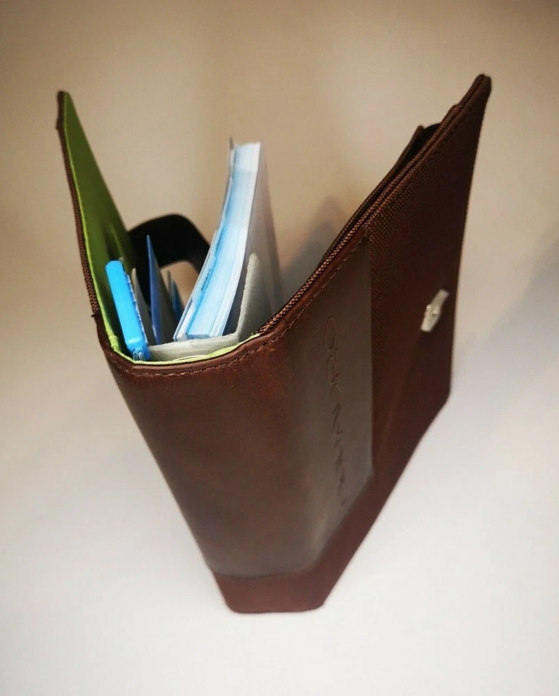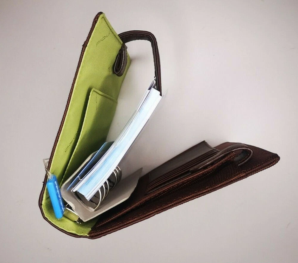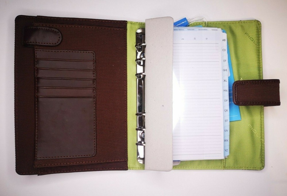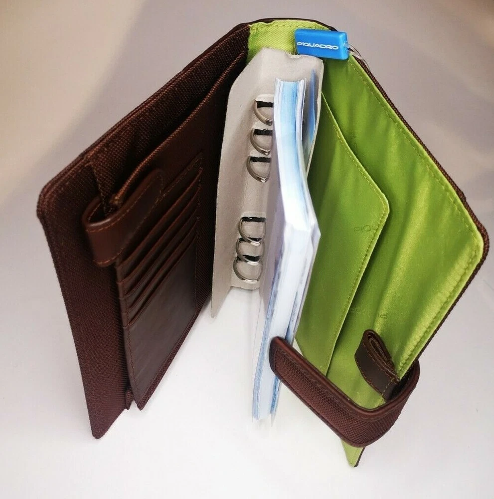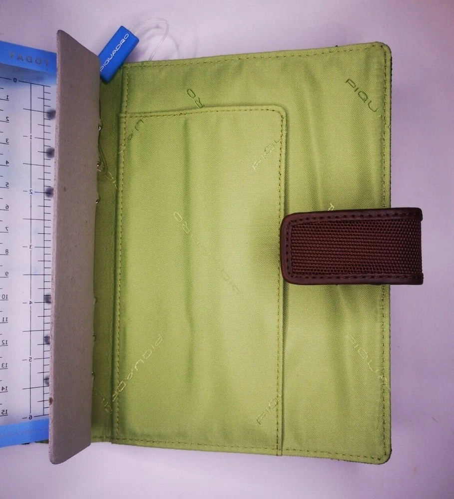 Piquadro Agenda / Filofax / Organizer / Planner Medium size, Brown color, green inside, made in Italy Organizer, Filofax, inside 6 ring- bound planner, you can add your own pages Synthetic and leather cover, metal magnet clip to close it 5x Credit cards or business card spots 2x both side pocket for papers loop for pen holding Included papers (17cm * 9.5cm) : Telephone book Contacts Projects / Notes Goals Square notes Size: 20.5cm * 15cm * 4.5cm Weight: 415gr Material: Synthetic and leather Color: Brown cover and green inside. (colors in picture could be different than in real life) Keep most reached item in organizer, business and credit cards, handy and neat. The three values inspiring the brand - design, functionality and technological innovation - merge in the Piquadro products with the taste of Italian craftsmanship, the quality of fine leathers and attention to detail. In each collection Piquadro offers a wide range of bags, suitcases and small accessories in which the originality and elegance of the Italian style are combined with a studied practicality and reliability at the service of work, travel and the intense pace of contemporary life. Shipping Shipping will be made from Latvia. 1-2 day time. Shipping Free Worldwide . We are not responsible for any custom duty, additional taxes or fees levied by other countries. Europe - 15 business days Other world - 21 business days Return 100% Satisfaction Guarantee, If you are not satisfied with the product you purchased for any reason, please contact us for a return instruction within 7 days for a refund. Refund can be made for item price only. Return shipping cost will be paid by buyer. Please be aware that item may arrived when you aren't home and you may ignore the post office note. Normally, item shall be kept at your local post office for a while to pick up before return to us. Sometime please do not expect your package to be left at your door. The USPS Postal system considers this a risk and will hold your package for you at the post office for pick up. You will be notified by them that your package is there to be picked up. Feedback If you are considering giving a neutral or negative Feedback or a low DSR, do write to me and give me an opportunity to address your concerns first. We believe that all buyers on ebay are honest and caring people and all will get positive feedback from us. Important Color may be vary due to camera and different monitor setting. We are not responsible for any custom duty, additional taxes or fees levied by other countries. Buyer has to pay custom charge or additional taxes. C ontact It will be are pleasure to answer any questions/queries you might have. Please contact me by ebay message ONLY
