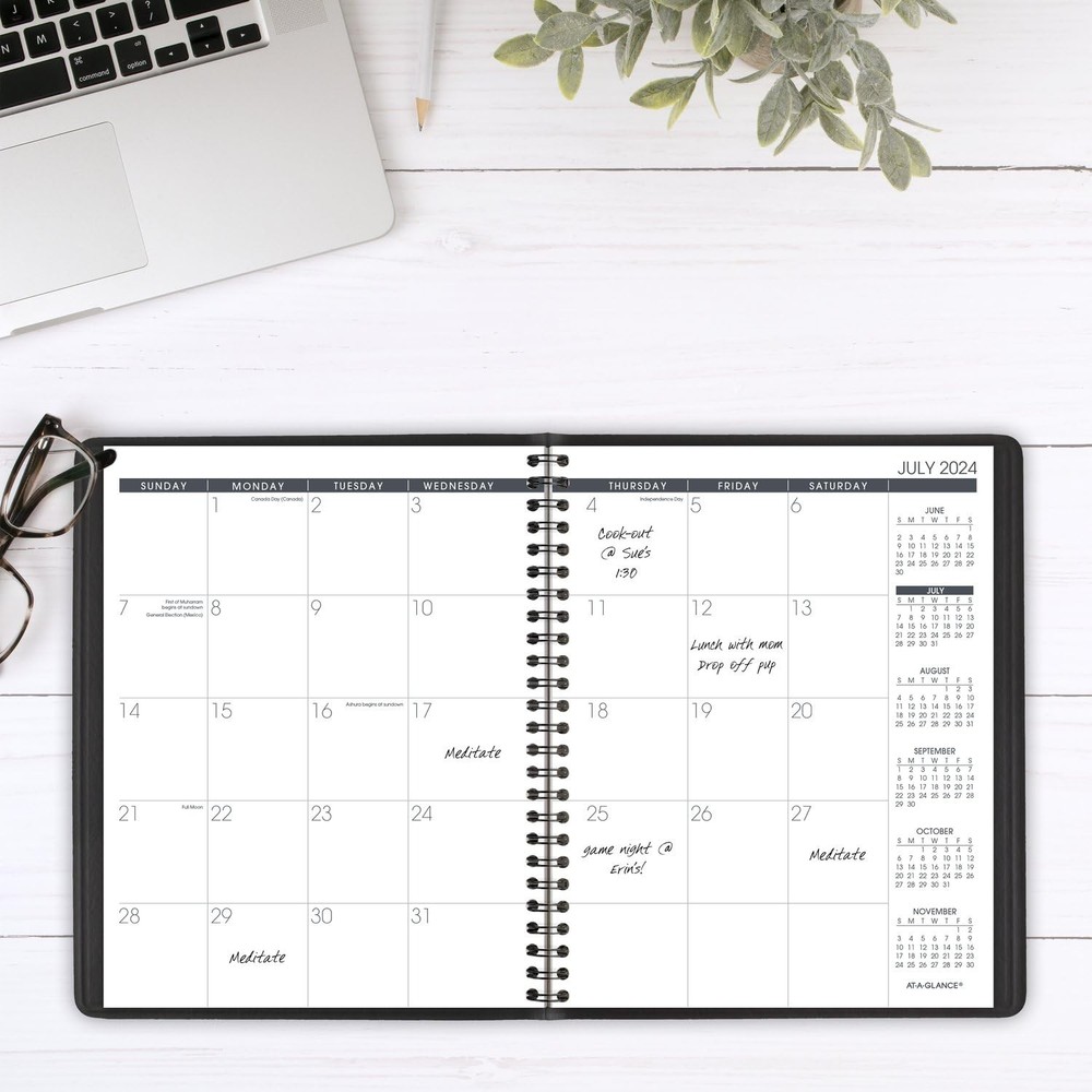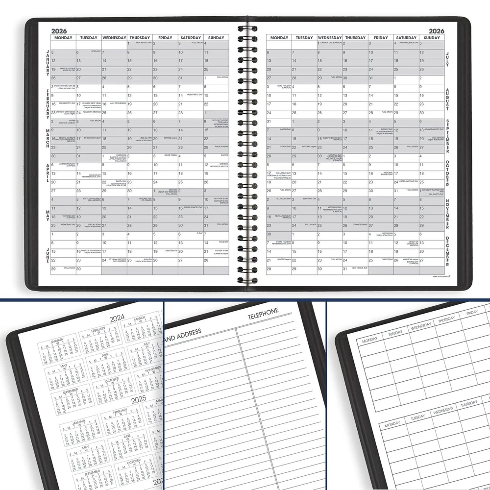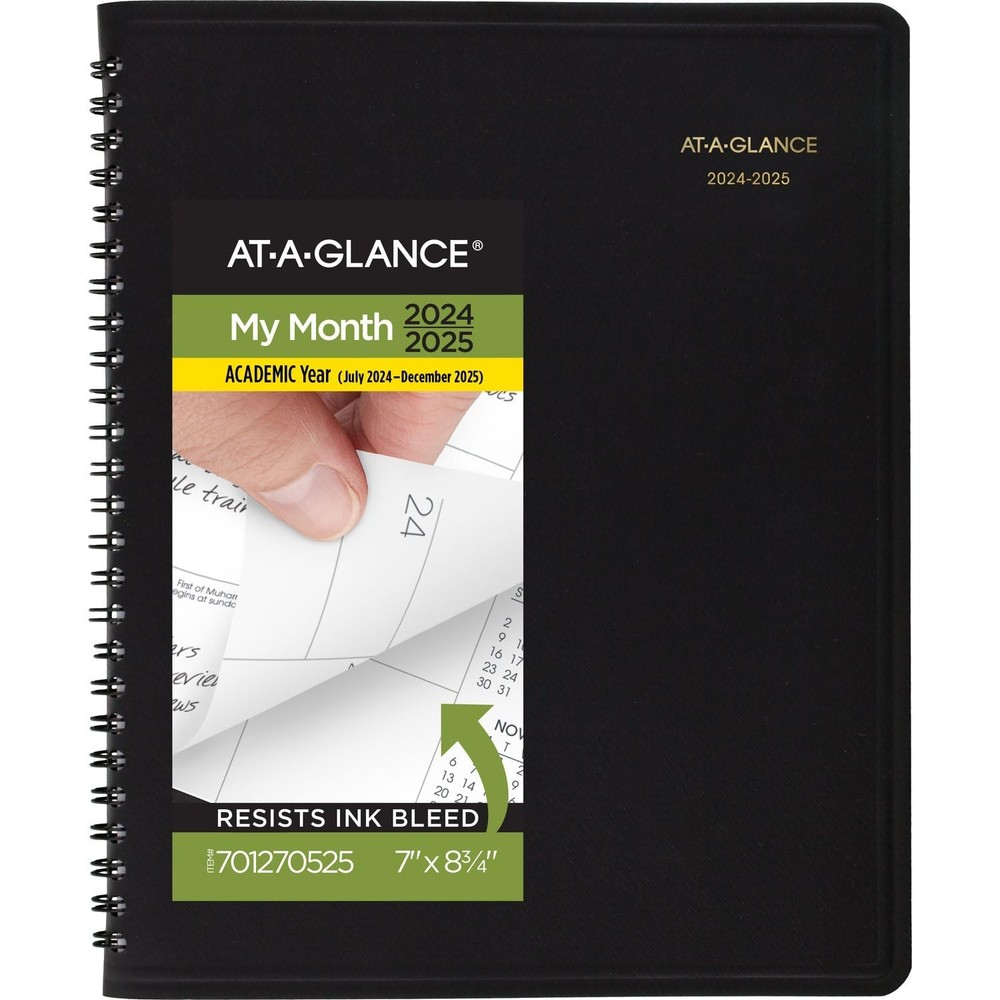 ACADEMIC PLANNING – Manage your schedule with this classic planner. Date range covers 18 months from July 2024 — December 2025 for academic year planning and beyond. GUARANTEED TO LAST ALL YEAR – ACCO Brands will replace any defective planner that is returned within one year from the date of purchase. This guarantee does not cover damage due to misuse or abuse. INK BLEED RESISTANCE – Plan your schedule without fear of distracting ink bleeding. Our high-quality paper is designed for ink bleed resistance, which keeps plans neat and legible. MONTHLY OVERVIEW – One page per two month spread features unruled daily blocks, plus past, current and future month reference calendars for in depth planning. Pages measure 7" x 8-3/4". Daily blocks measure 1-9/16" x 1-5/8". ENHANCED ORGANIZATION – Special pages include a class schedule, future planning pages, a 3-year reference calendar, contacts, 8 perforated notetaking sheets and a spacious pocket for extra storage PROFESSIONAL DESIGN – Take charge of your schedule with classic style. Planner has a black, faux leather cover and twin wire binding to help keep pages secure. ASSEMBLED IN THE U.S. – Thoughtfully designed and assembled in the U.S. using high-quality materials