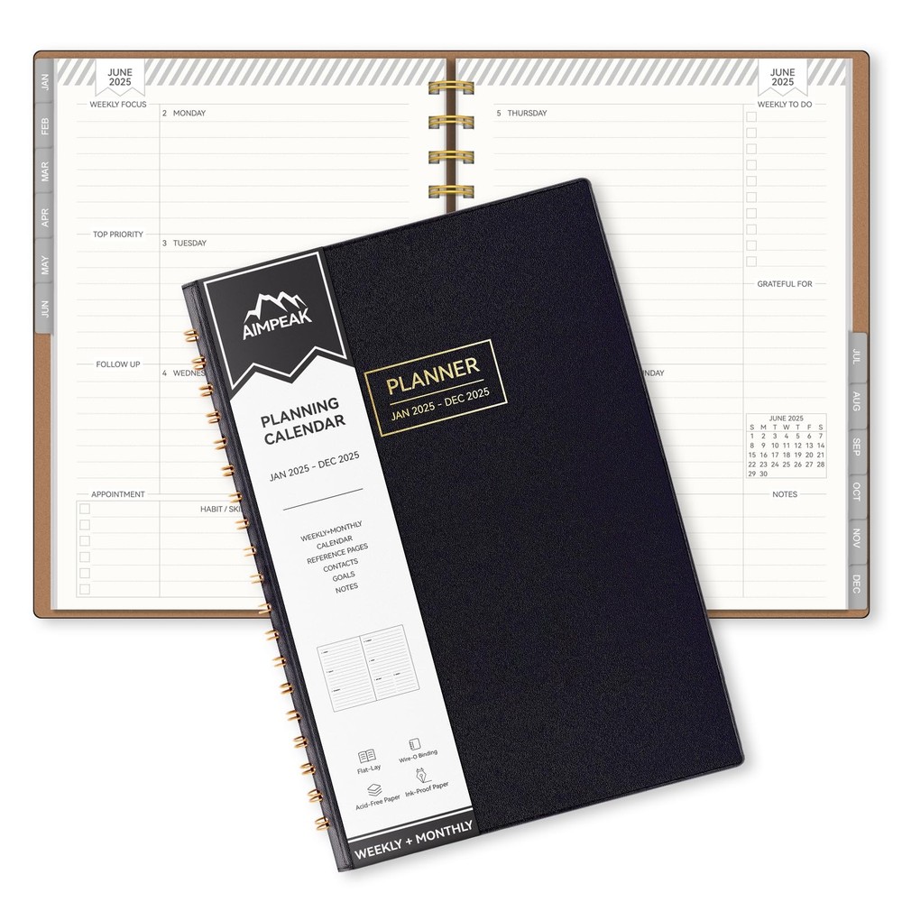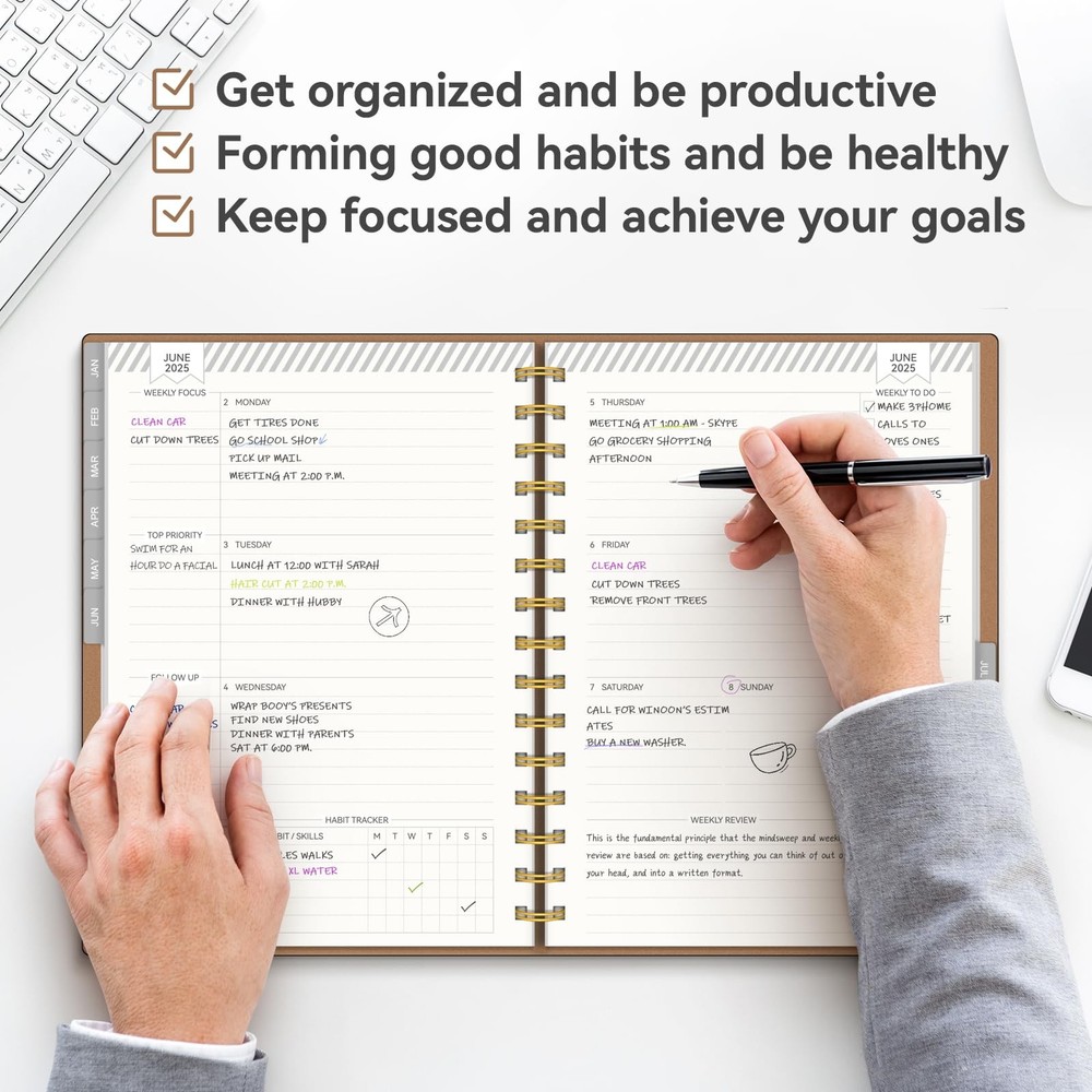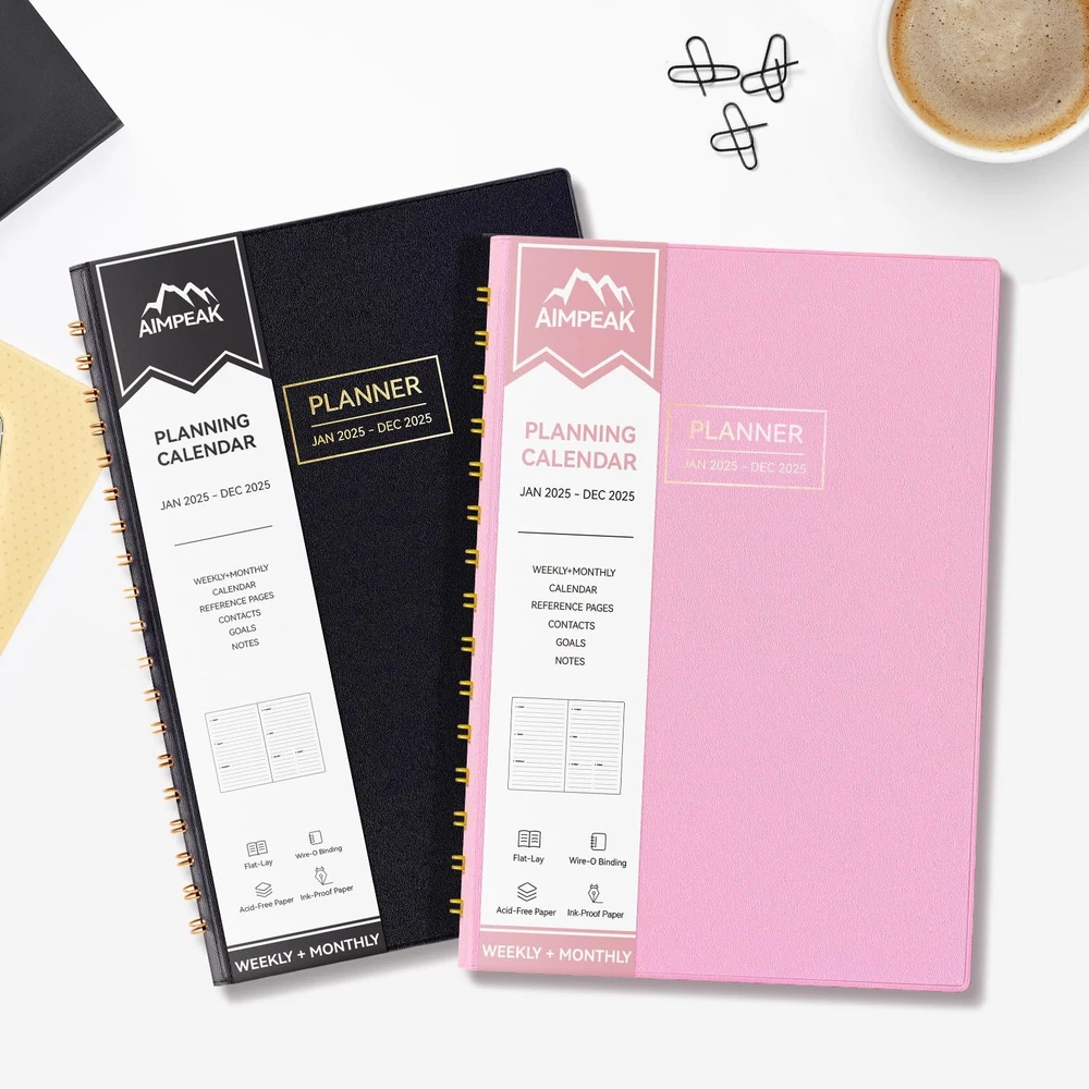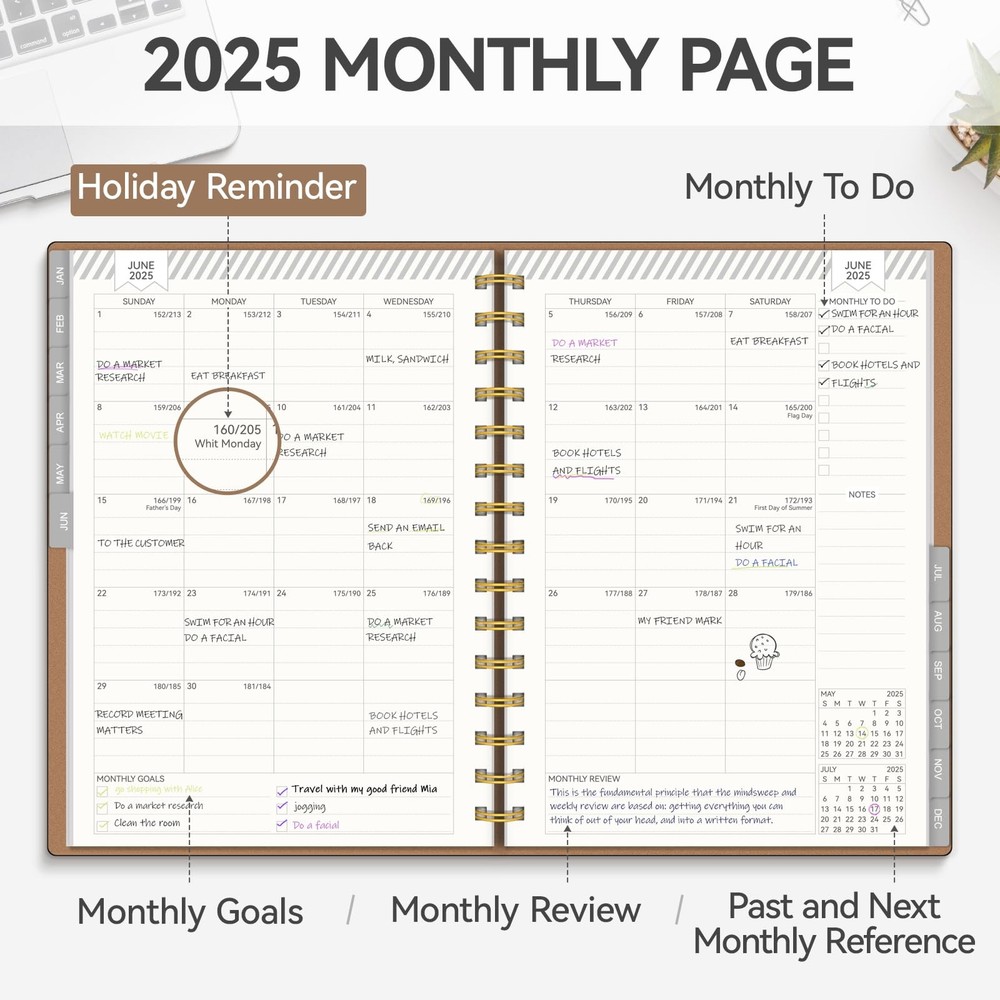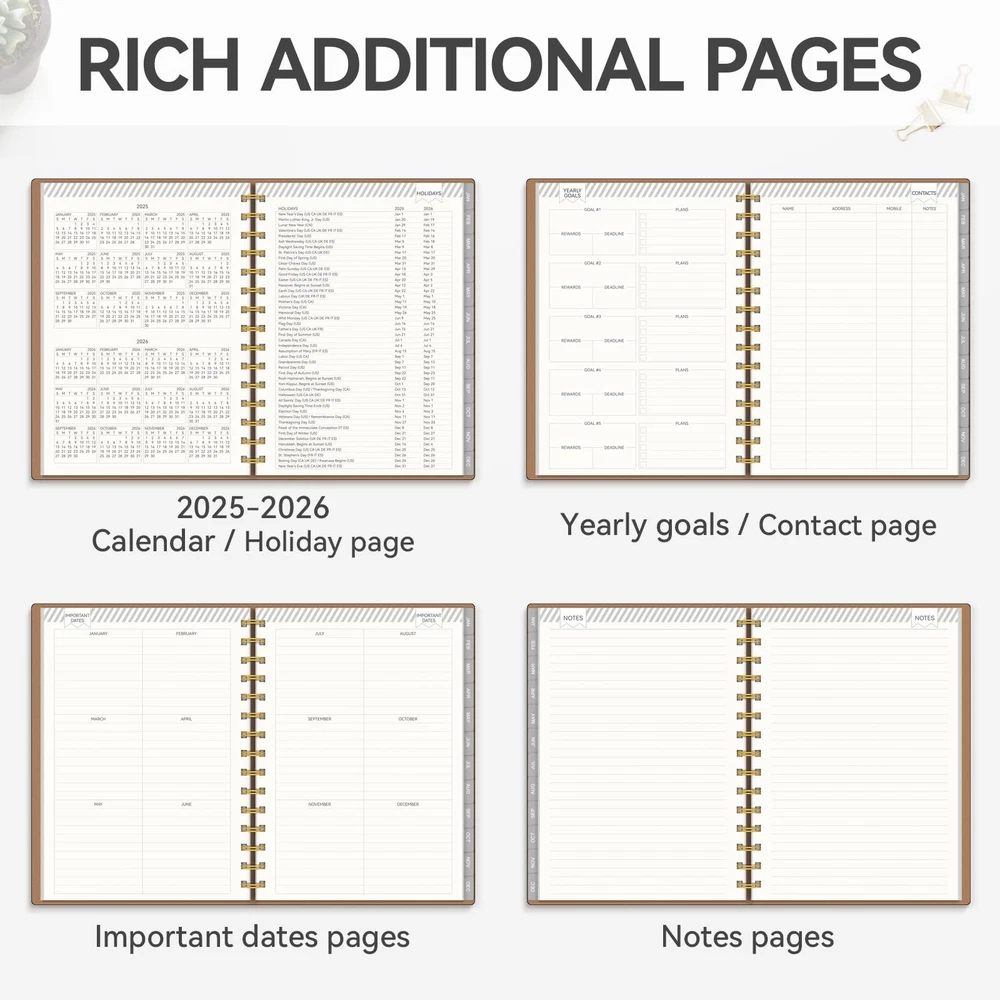 📔2025 Planner : This planner contains a plan from Jan. 2025 - Dec. 2025 with weekly monthly planning pages, additional pages including 2025-2026 calendar overview, personal information, goals and plans, important dates page, 2025-2026 holiday pages, contact and notes pages, help you get organized with your life. 📔Clear monthly overview: The 2025 weekly monthly planner includes 12-month tabs and reference calendars for the previous and next month for easy long-term planning. The calendar planner contains monthly goals, to do list, reviews for you to keep focused. 📔Richer weekly schedule: 2025 calendar planner contains weekly focus, top priority, follow up, appointment, habit tracker, to do list , grateful for, weekly reviews and notes. Ample writing space for more detailed planning. 📔Professional Design: The 2025 planner features a faux leather cover for durability and double wire binding for extra strength. Its high-quality, acid-free paper reduces ink bleed for a superior writing experience. With excellent texture and a classic, stylish look, this planner is both functional and elegant. 📔Versatile for All Occasions: 2025 calendar planner is an ideal gift for friends and family and perfect for office tasks, study sessions, and daily use.