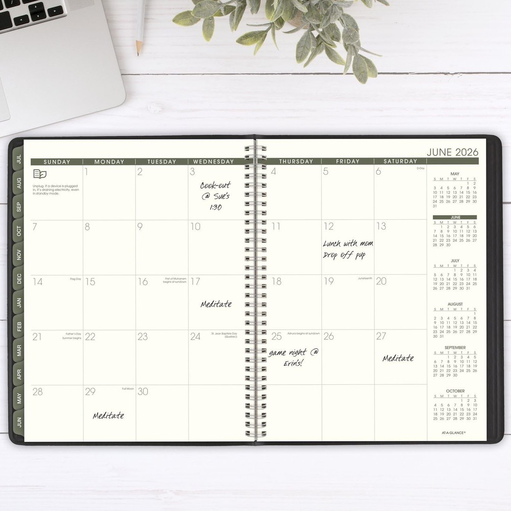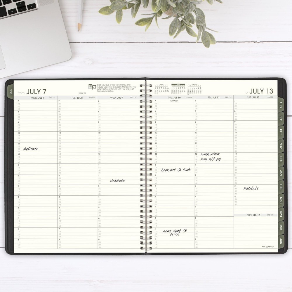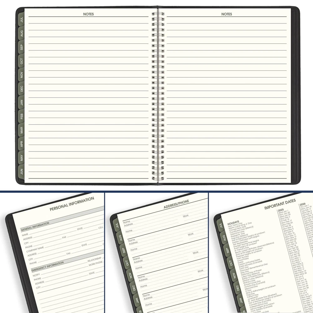 Planner 2025-2026 Academic, Weekly & Monthly, Quarter-Hourly Appointment Book, 8-1/4" x 11", Large, Monthly Tabs, Flexible Cover, Recycled, Black (70957G05) ACADEMIC PLANNING – Keep track of your schedule with an eco-friendly twist this year. Date range covers 12 months from July 2025 – June 2026 with Julian dates. GUARANTEED TO LAST ALL YEAR – ACCO Brands will replace any defective planner that is returned within one year from the date of purchase. This does not cover damage due to misuse or abuse. RECYCLED MATERIALS – Make an environmentally conscious choice. Contains 100% post-consumer waste recycled paper, 50% post-consumer waste recycled covers. Tips for green living included on every page. WEEKLY & MONTHLY OVERVIEWS – Weekly spreads have ruled quarter-hourly appointments weekdays 7:00 a.m. - 8:45 p.m. and Saturdays 7:00 a.m. - 5:30 p.m. Monthly spreads are unruled for open planning. 8-1/4" x 11" page size. ENHANCED ORGANIZATION – Special features include a 3-year reference calendar, 4 future planning pages, important dates, contacts pages and 16 notes pages PROFESSIONAL DESIGN – Planner has a black faux leather cover and twin wire binding to help prevent snags and secure pages Shipping We ship within Three business days of payment, usually sooner. We use a selection of shipping services such as UPS, FedEx, USPS etc. We only ship to the lower 48 states, no APO/FPO addresses or PO Boxes allowed. Local pickups and combined shipping options are not provided at this time. Return You can return a product for up to 30 days from the date you purchased it. Any product you return must be in the same condition you received it and in the original packaging. Please keep the receipt. Payment We accept payment by any of the following methods: PayPal Please pay as soon as possible after winning an auction, as that will allow us to post your item to you sooner! Feedback Customer satisfaction is very important to us. If you have any problem with your order, please contact us and we will do our best to make you satisfied. Contact Us If you have any queries, please contact us via ebay. We usually respond within 24 hours on weekdays. Please visit our eBay store to check out other items for sale! Thank you for shopping at our store.